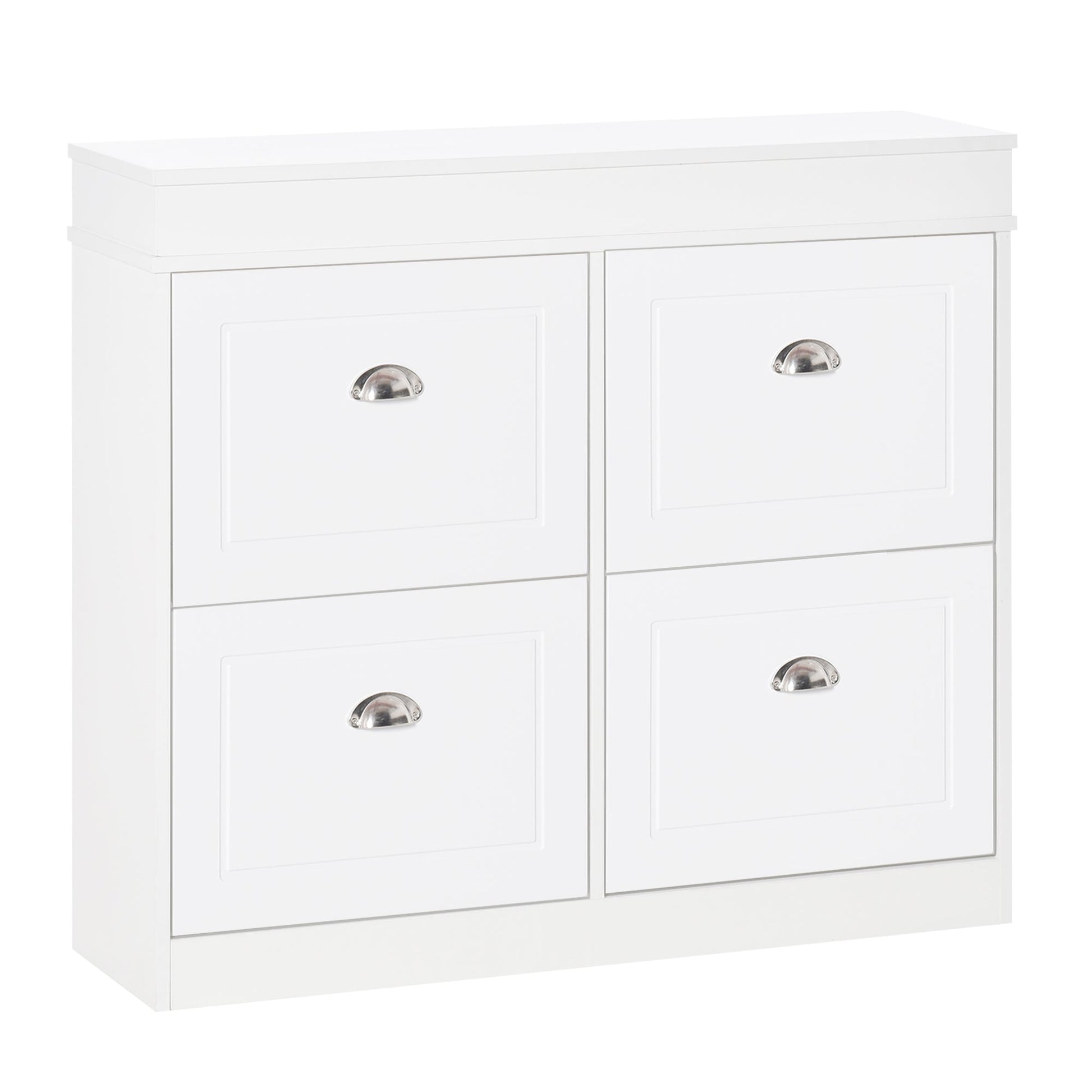 HOMCOM Shoe Cabinet with 4 Flip Drawers Wood Tipping Bucket Narrow Storage Cupboard with Adjustable Shelf Hall Organizer for Entrance Foyer White