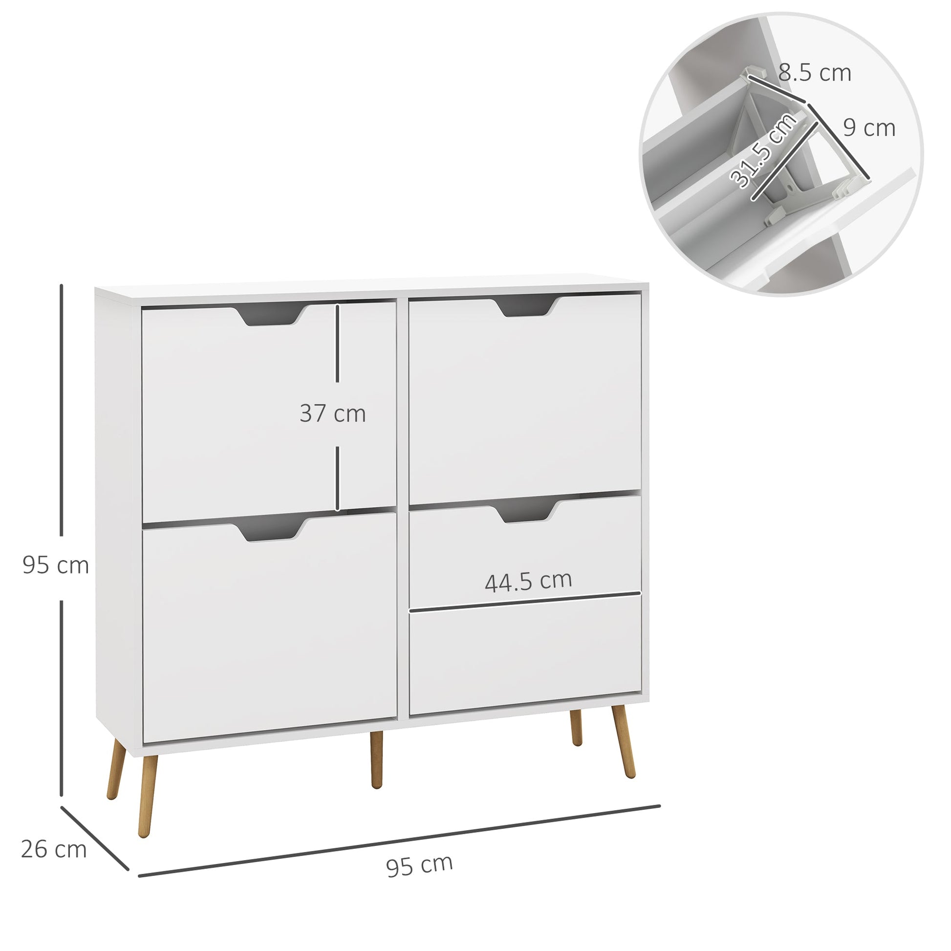 خزانة أحذية هومكوم، 4 أدراج قابلة للطي، منظم أحذية يتسع لـ 16 زوجًا من الأحذية، أبيض