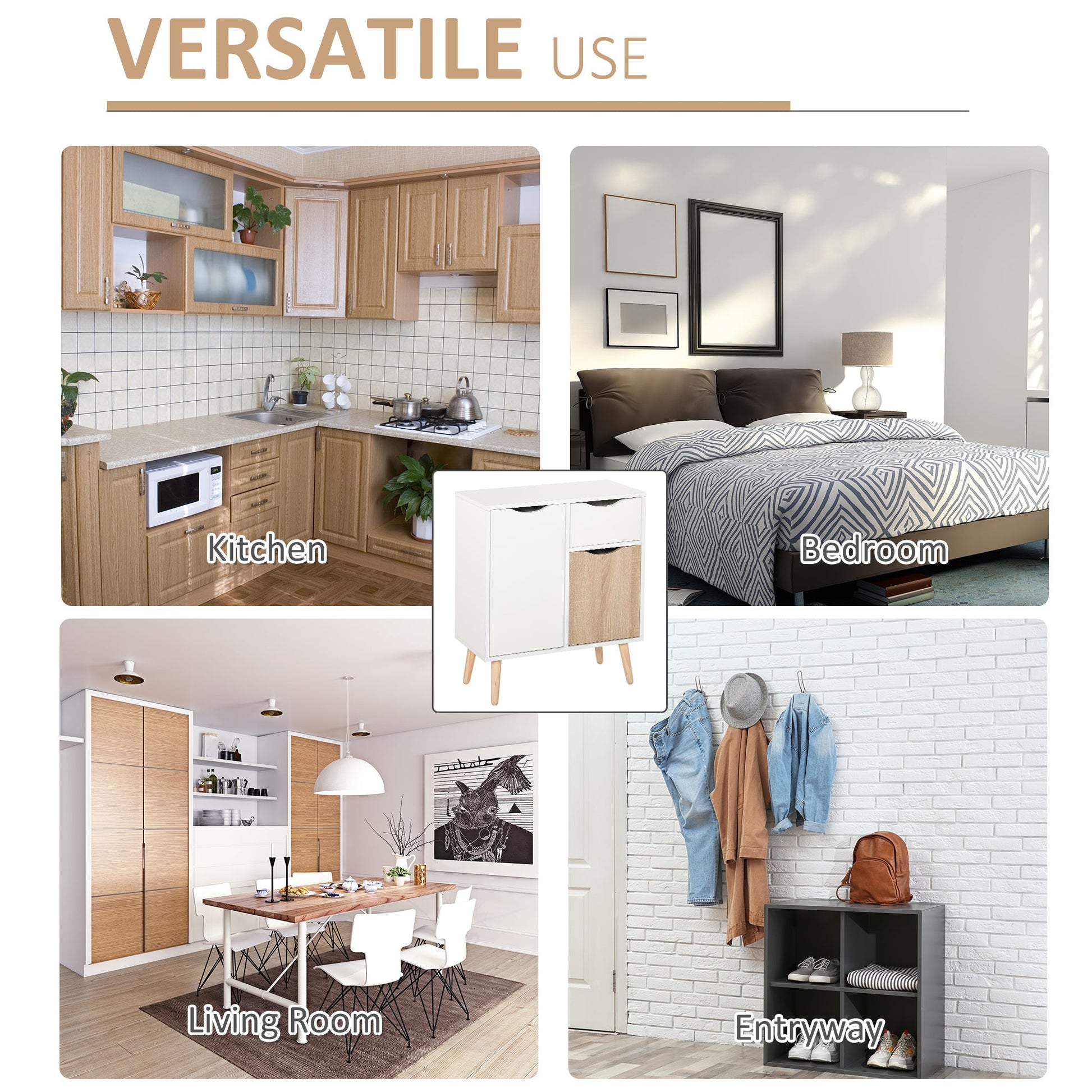 HOMCOM Sideboard Floor Cabinet Storage Cupboard with Drawer and Solid Wood Legs for Bedroom, Living Room, Entryway, Brown