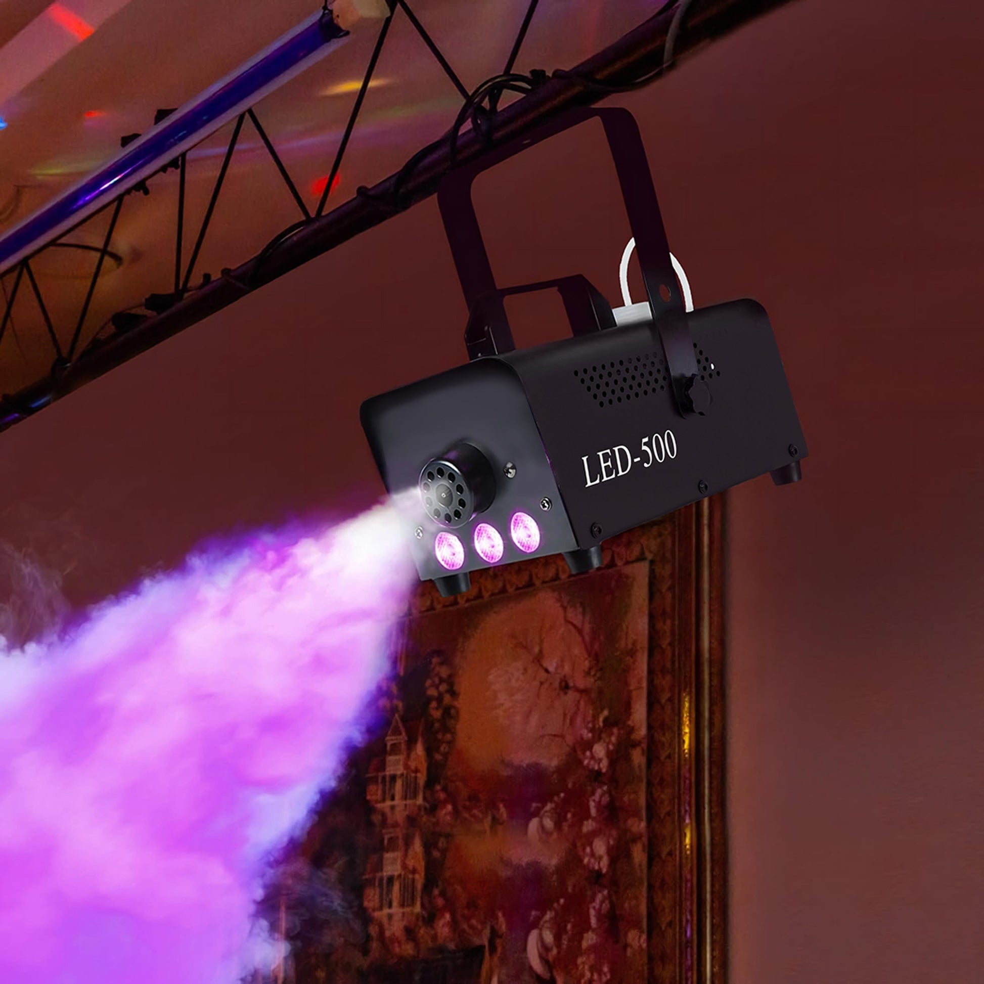 - 450W fog machine can produce 2000 cubic feet of fog per minute