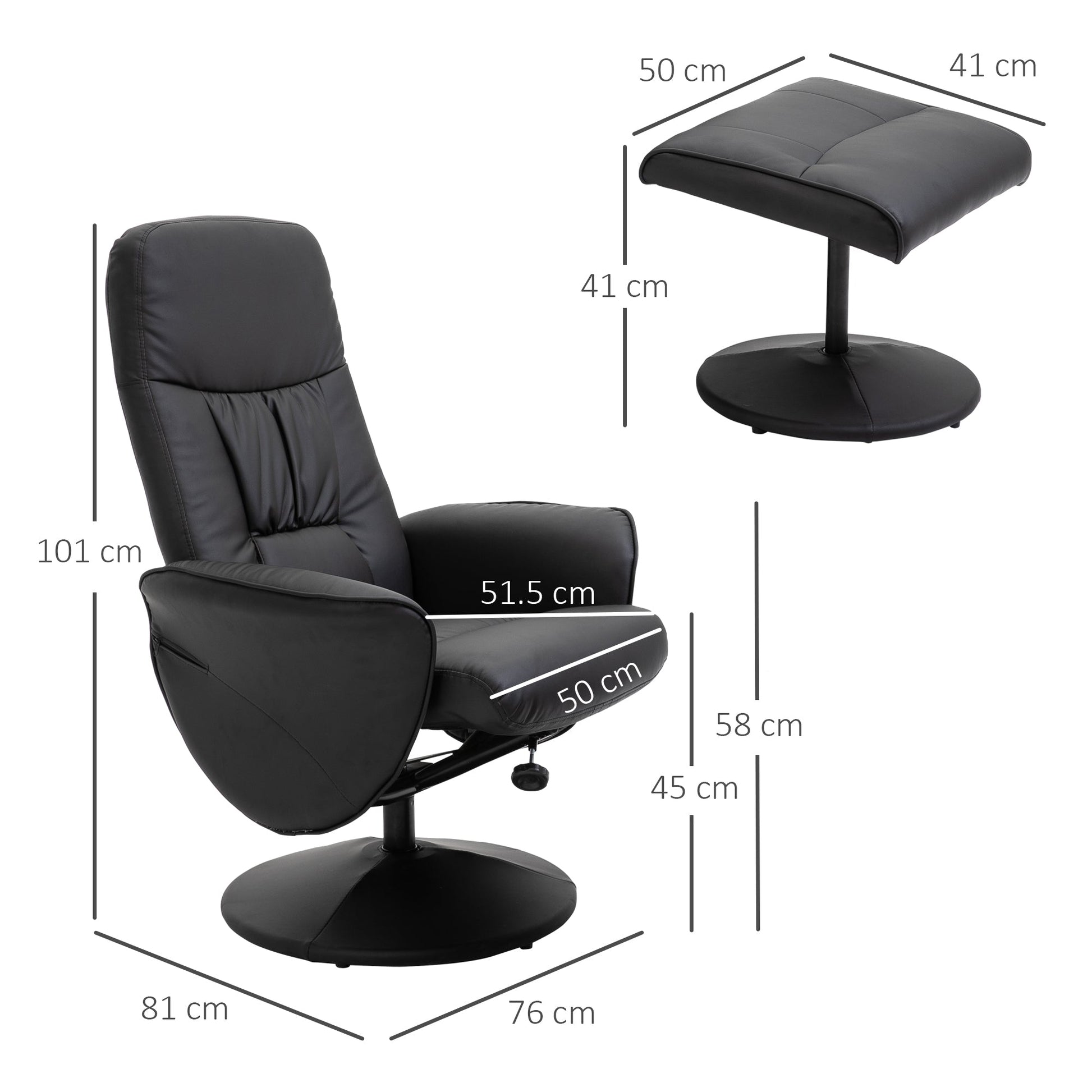 كرسي دوار قابل للإمالة من HOMCOM مع مسند للقدمين، وكرسي بذراعين من الجلد الصناعي ومسند قدم مع ظهر مرتفع وقاعدة دائرية لغرفة المعيشة، باللون الأسود