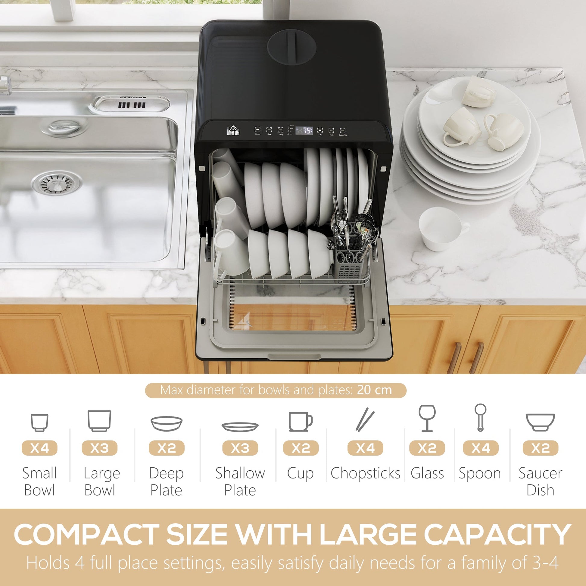 HOMCOM 6L Five-Mode Tabletop Dishwasher - Black