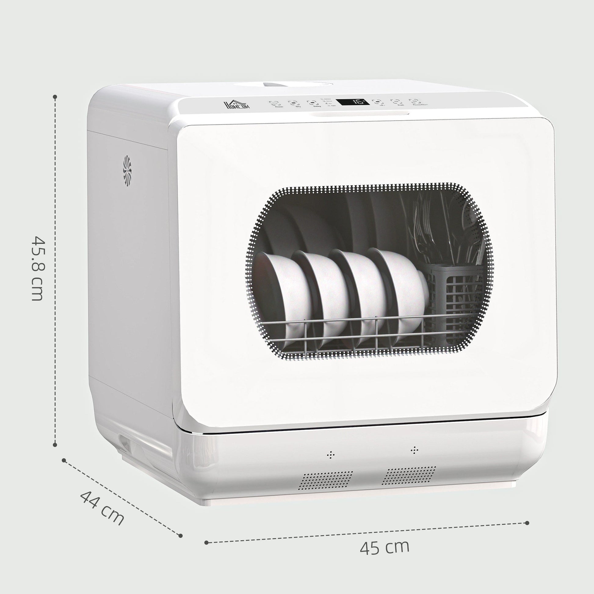 HOMCOM Table Top Dishwasher with Built-in 6L Water Tank, Mini Countertop Dishwasher with 6 Programs, 4 Place Settings, White