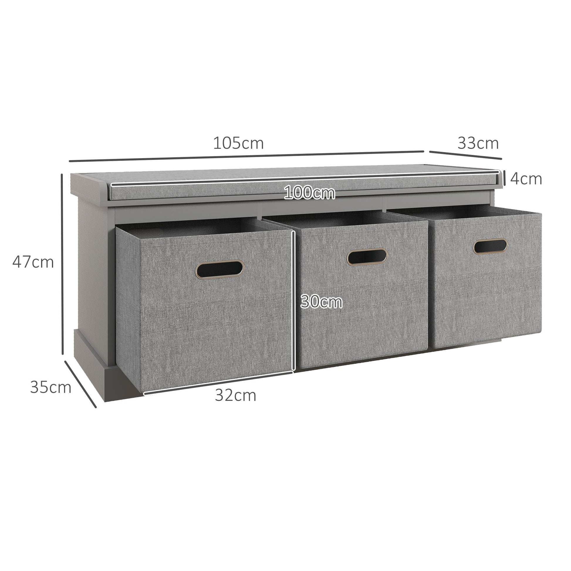 مقعد تخزين أحذية بثلاثة أدراج من HOMCOM، مع مقعد علوي مبطن - رمادي