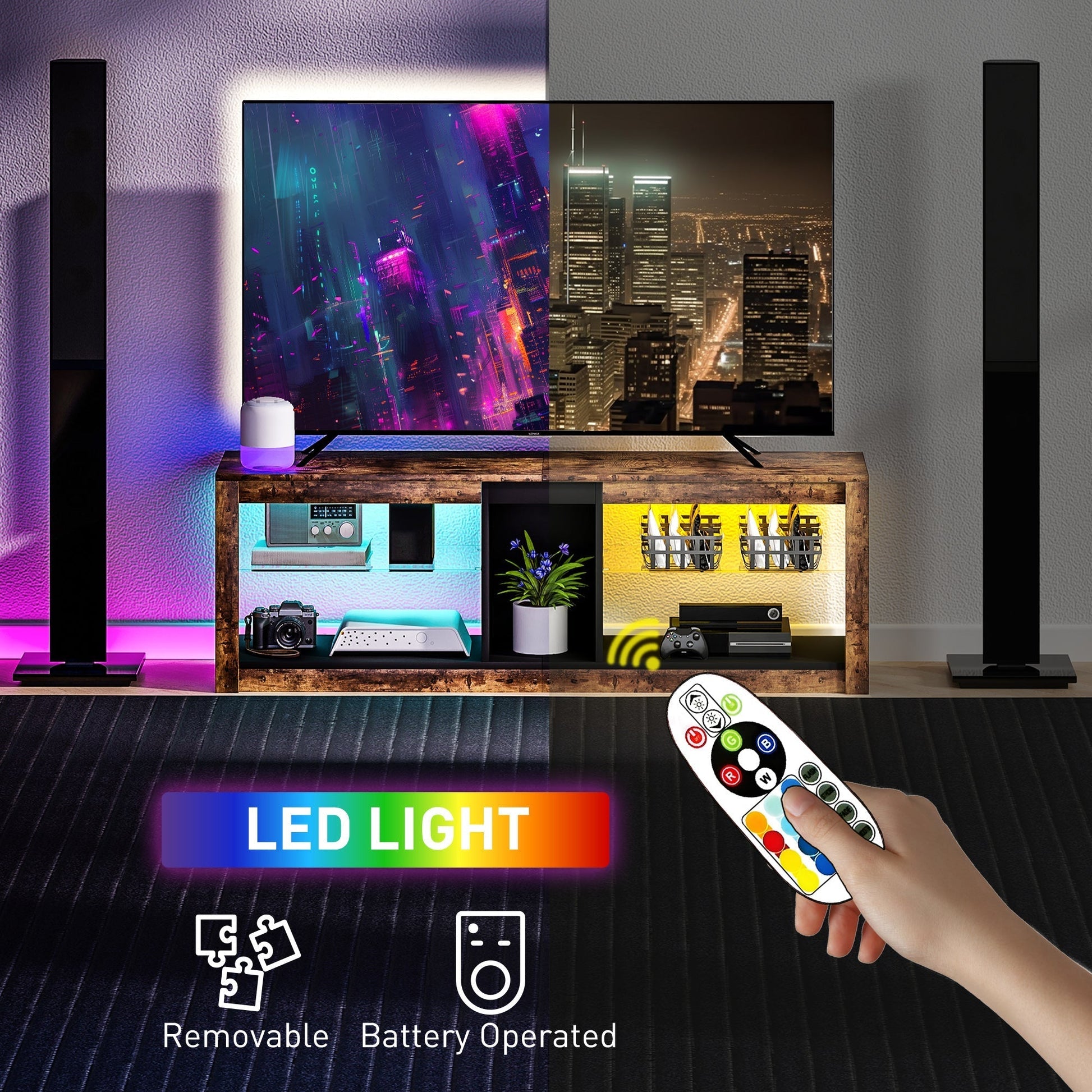 HOMCOM TV Stand Cabinet with LED Lights and Remote Control for TVs up to 65", Entertainment Centre with Storage Shelves and Compartment, Rustic Brown