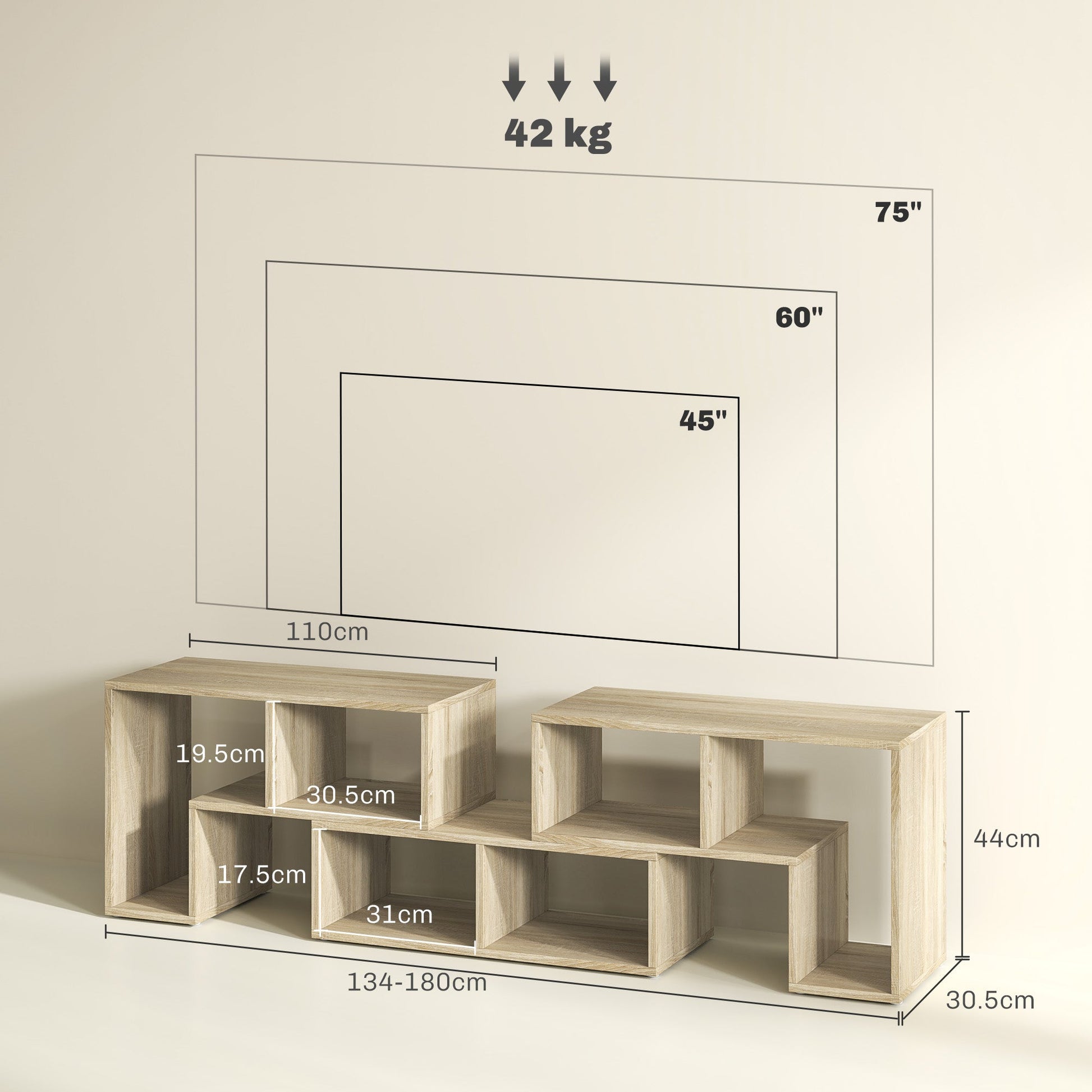 - 134-180cm tabletop holds screens maximum 75"