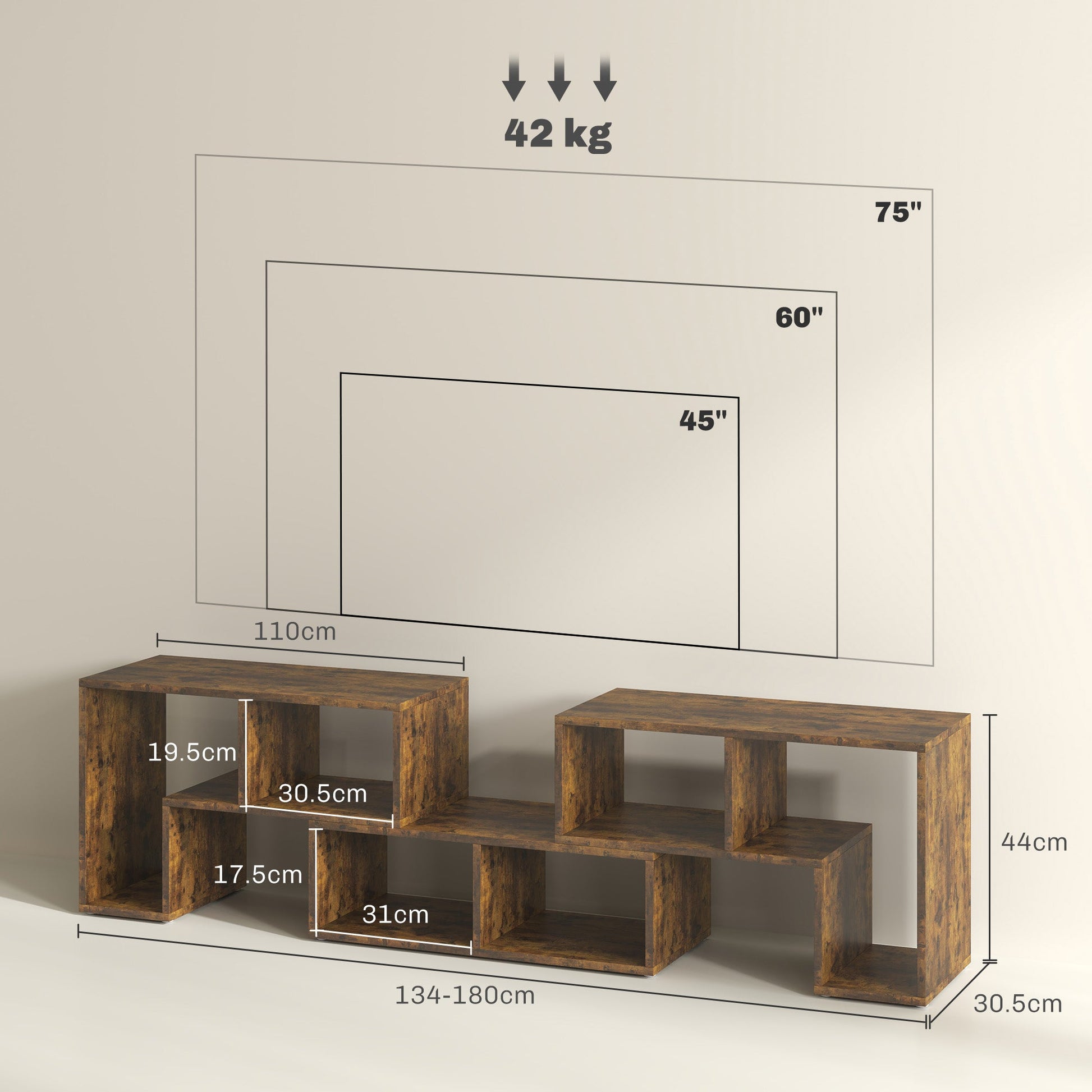 HOMCOM Three-Block Modular TV Stand - Rustic Brown