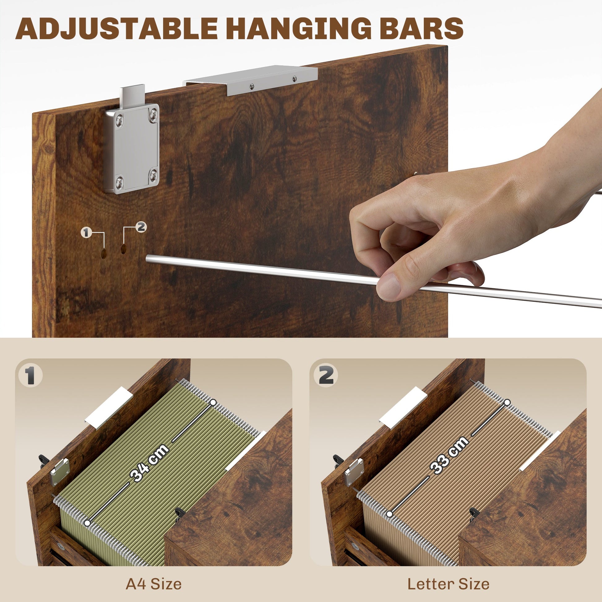 Keep your workspace tidy and stylish with this HOMCOM lockable filing cabinet. It comes with a small drawer and a large drawer for file storage; adjustable bars in the large drawer to hold A4/letter-sized files. The lockable drawers ensure your documents stay secure, with two keys included. Office drawers with compact design, enhanced with five wheels for easy mobility, allows it to fit snugly under your desk.