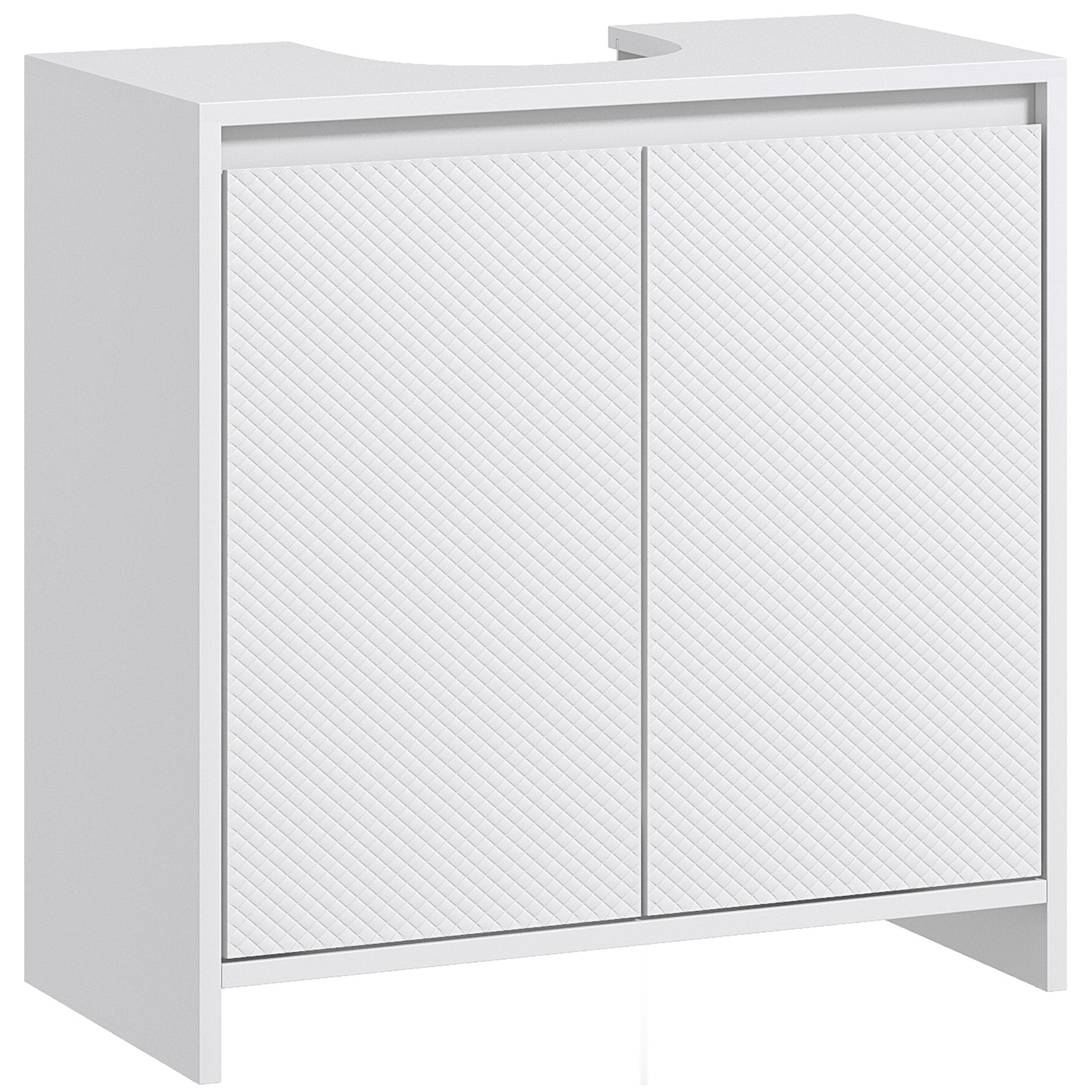 Refresh your bathroom with the HOMCOM under sink storage cabinet — a smart solution that fits neatly beneath your sink thanks to its U-shaped cut-out. With two handy shelves for organising toiletries and doors decorated in a subtle diamond pattern, this bathroom sink cabinet brings both charm and everyday practicality to your space.