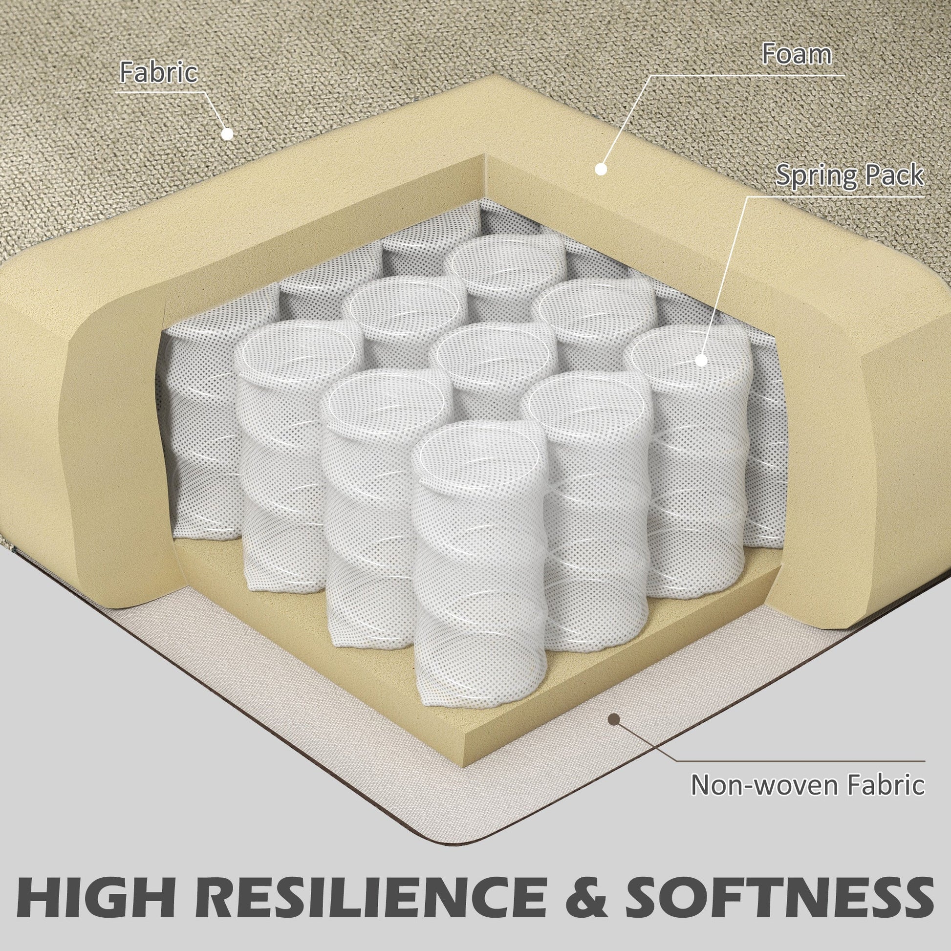 HOMCOM كرسي منجد بظهر مرتفع وأذرع ملفوفة وأرجل خشبية، كرسي بذراعين مبطن وسميك ناعم، بيج