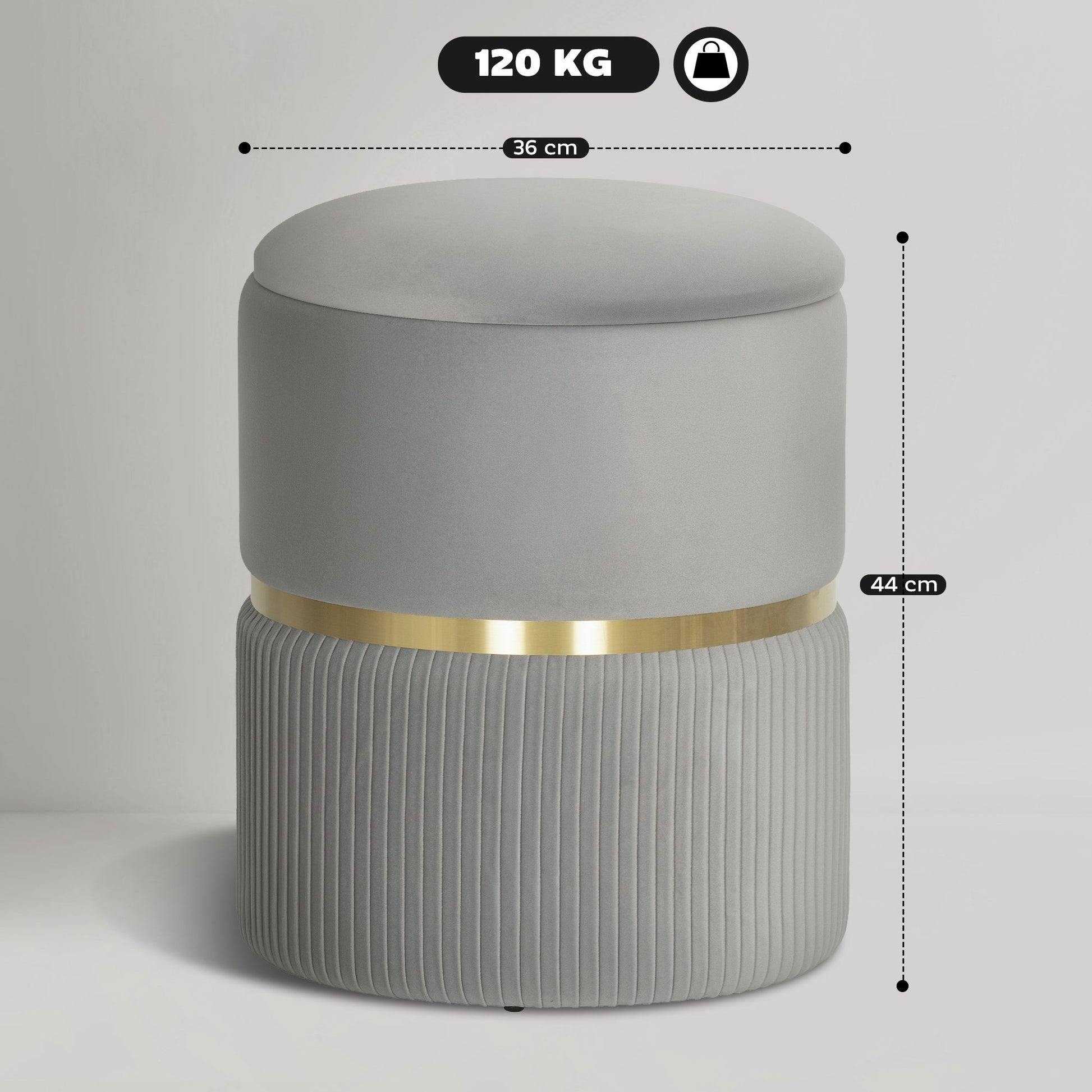 HOMCOM Velvet-Feel Storage Ottoman - Light Grey