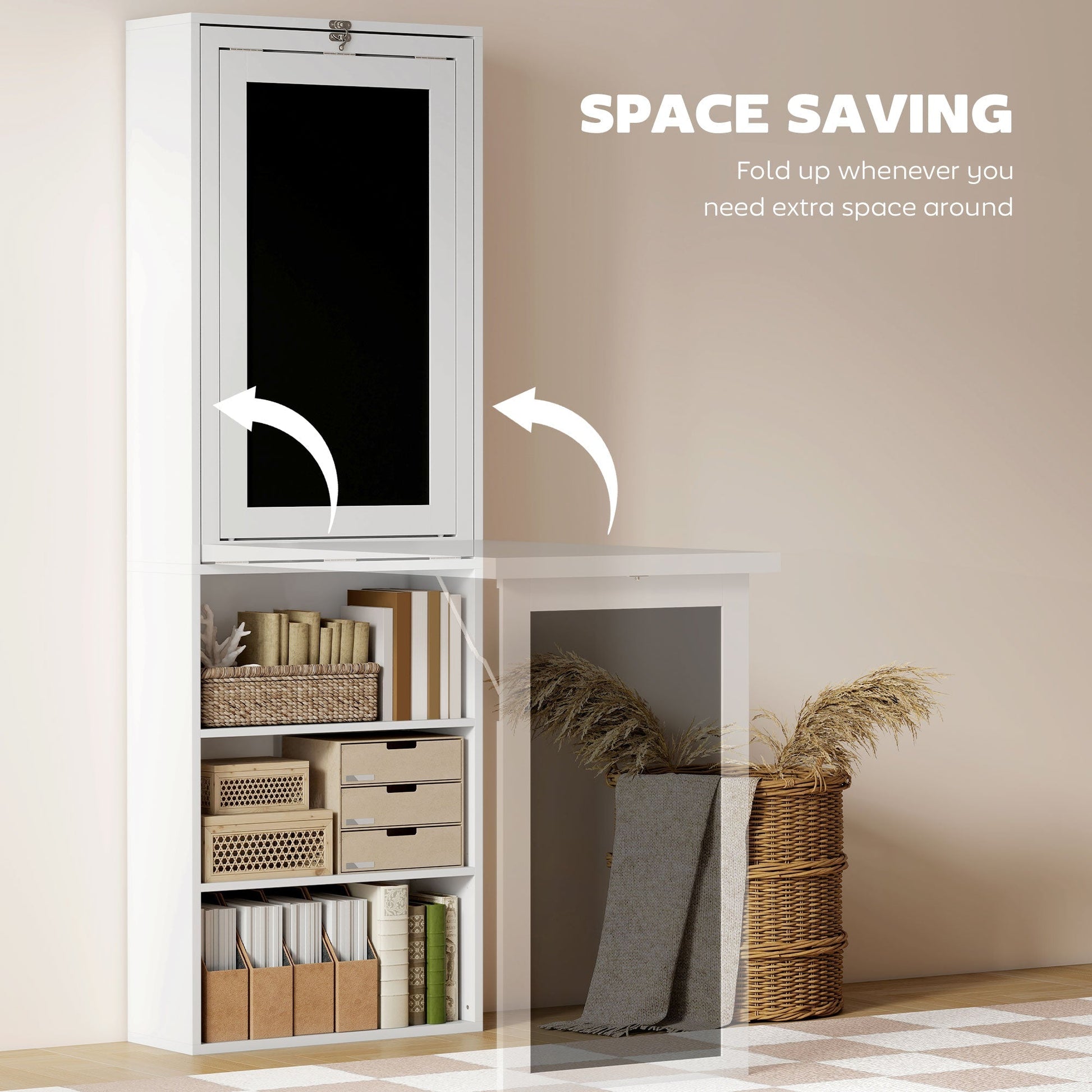 HOMCOM Wall Mounted Computer Desk, Folding Study Table with Black Board and Bookshelf, Multifunctional Floating Writing Desk for Home Office, White