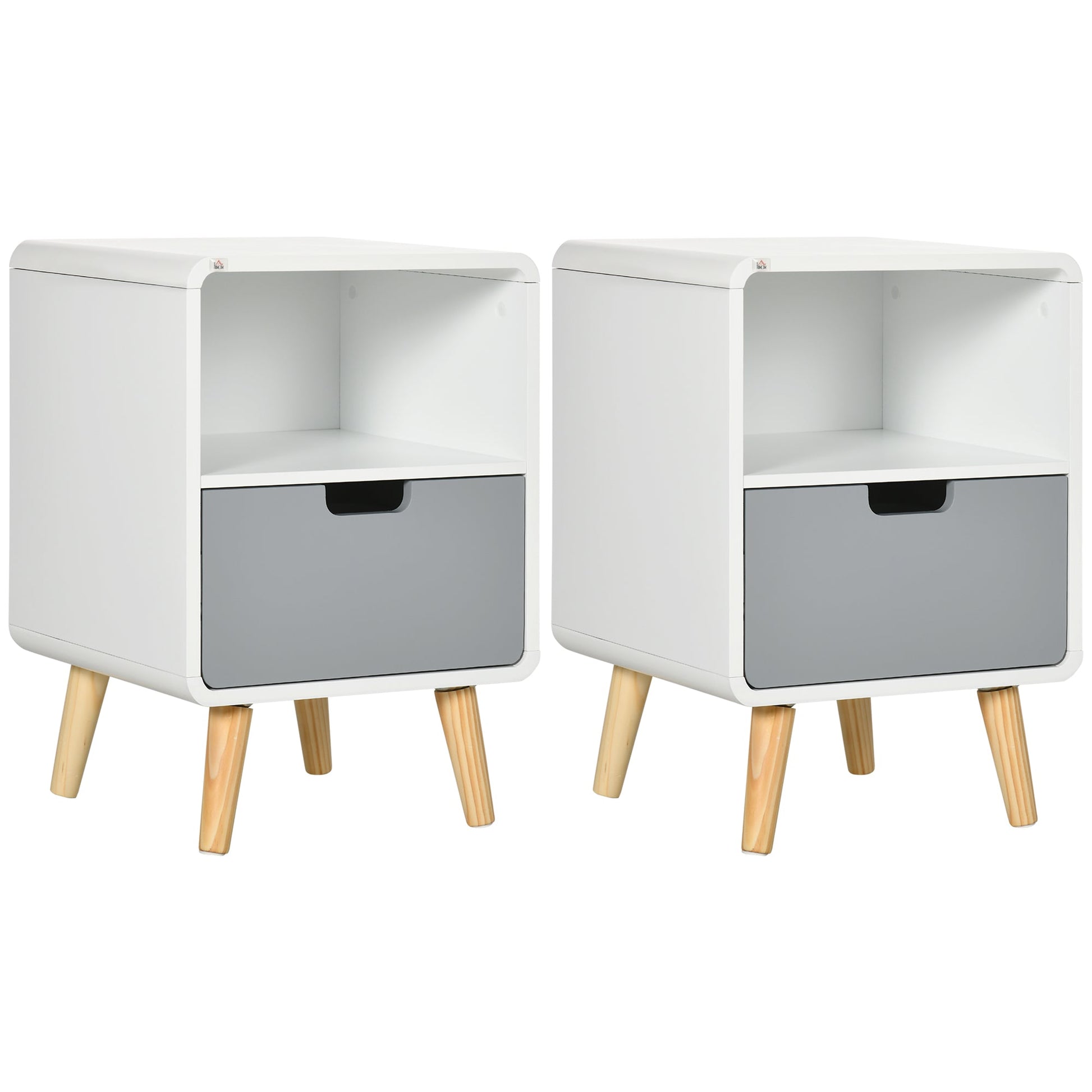 منضدة خشبية بجانب السرير من HOMCOM مع درج ومصباح خشبي وحدة تخزين مكتبية لغرفة النوم على الطراز الاسكندنافي الشمالي، مجموعة من 2