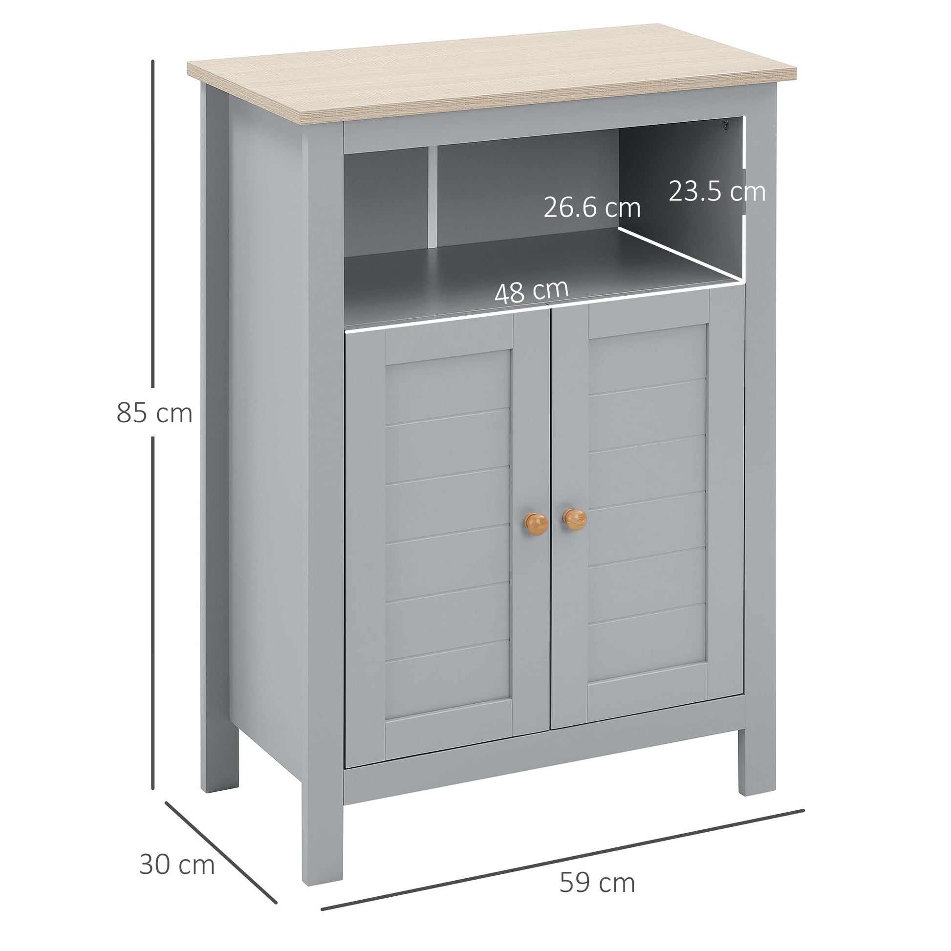kleankin Bathroom Floor Cabinet, Free Standing Cupboard with Double Doors and Adjustable Shelf for Kitchen, Hallway, Living Room, Grey