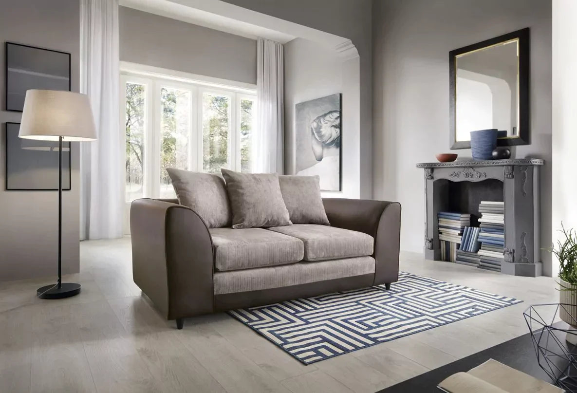 أريكة بمقعدين من قماش الشنيل والجلد الصناعي من الوجن