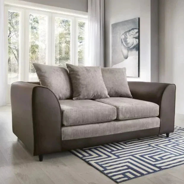 طقم أريكة من قماش الشنيل والجلد الصناعي من الوجن 3 مقاعد و2 مقاعد