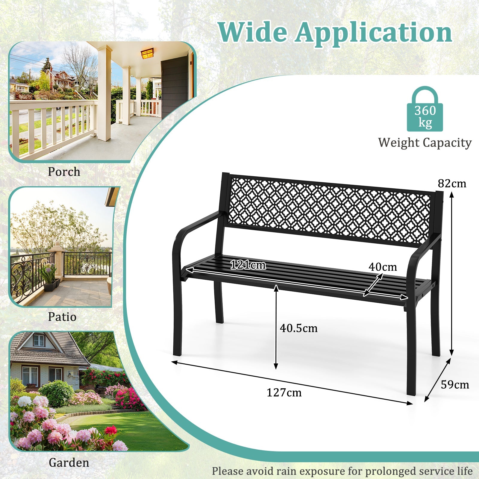 Metal Outdoor Garden Patio Bench with Geometric Lattice Backrest-Black