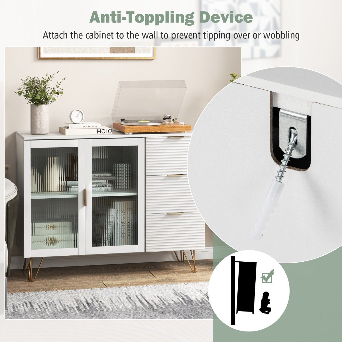 Modern Sideboard Storage Cabinet with 2 Glass Doors and 3 Drawers-White