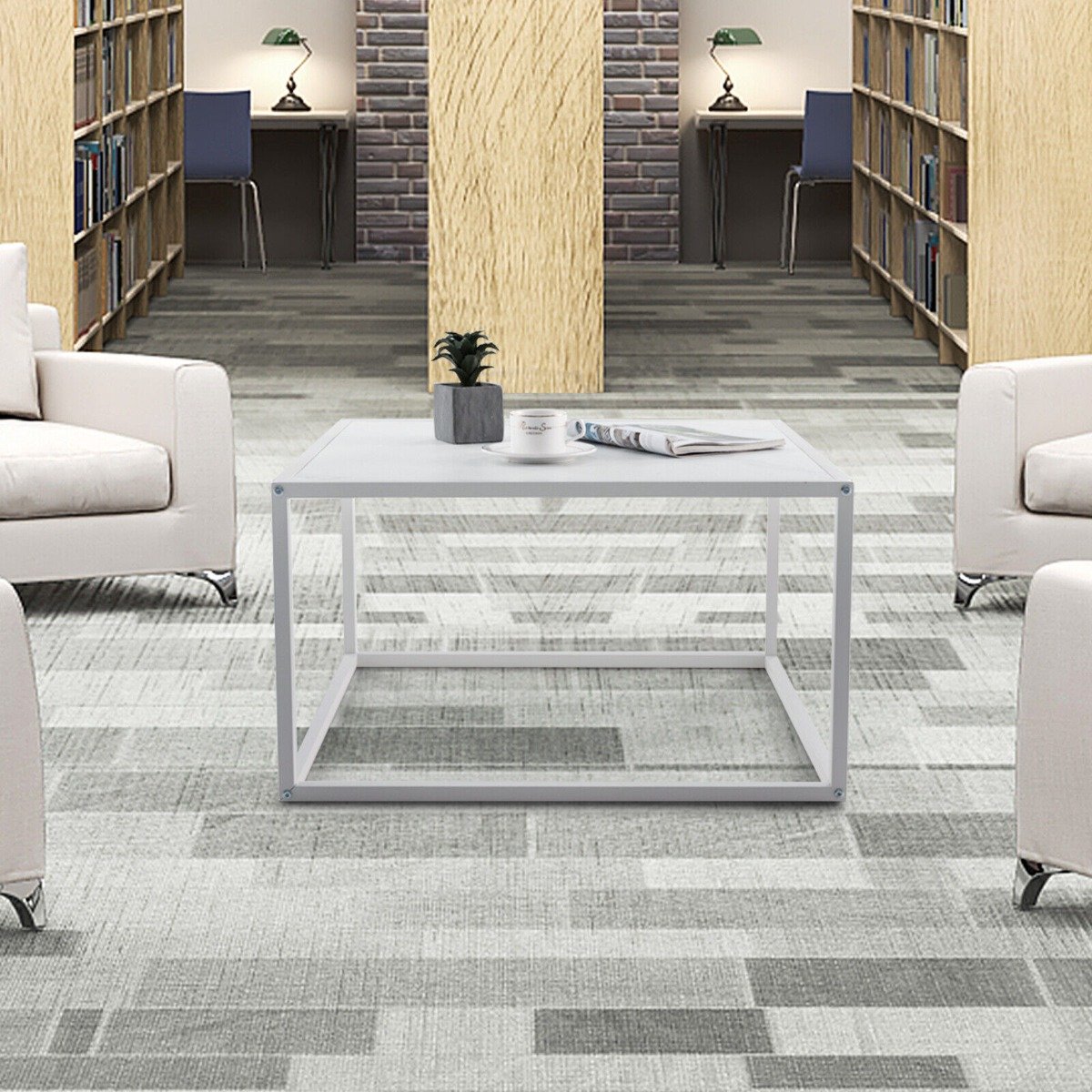 Modern Square Leisure Coffee Table with Faux Marble Tabletop-White