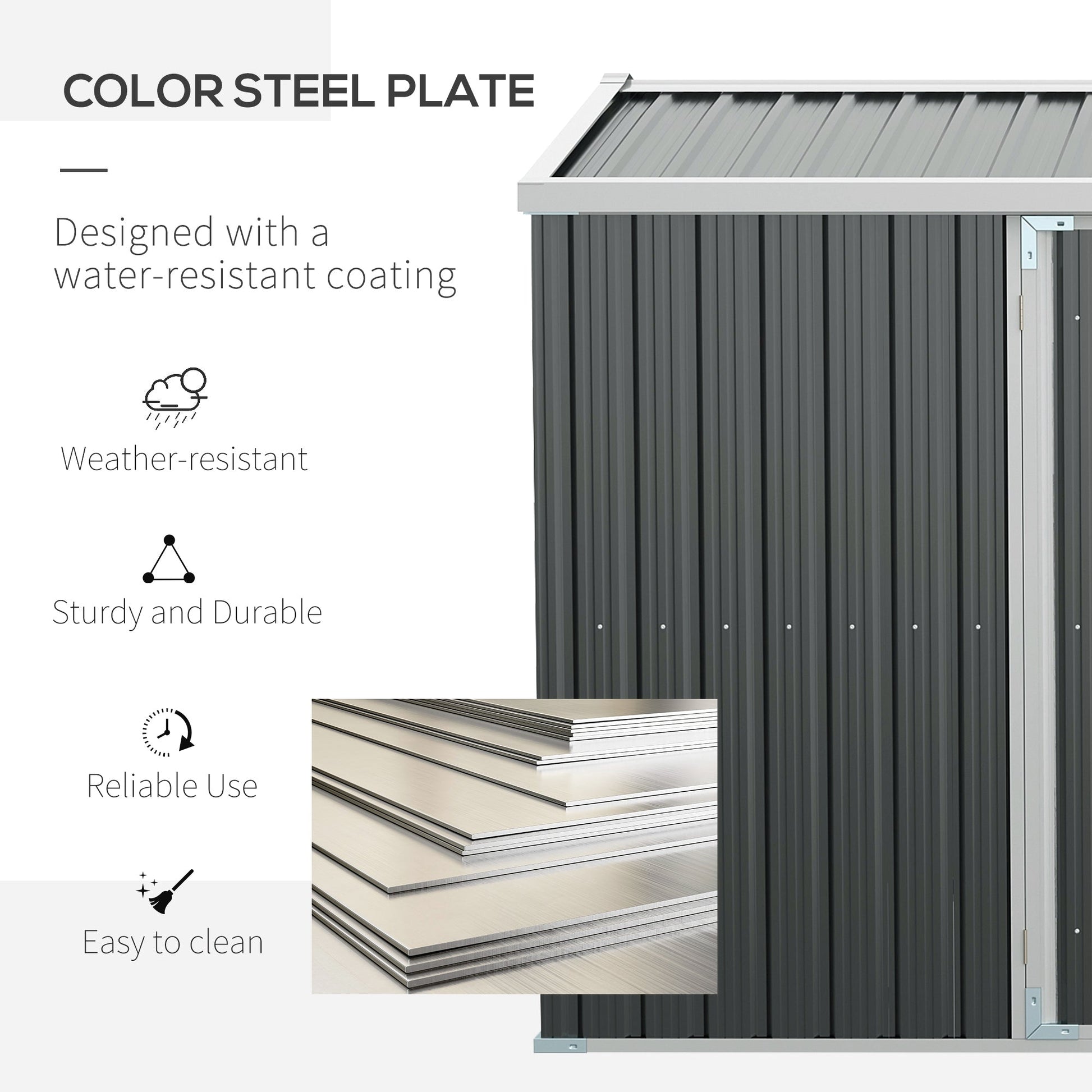 Easily add storage space and value to your property with an outdoor garden shed from Outsunny. The steel tool storage shed has distinct advantages over traditional wooden models that make it a much more attractive choice for purchase. Large space for keeping tools, equipment, bikes and bins. Besides, the durable and weather-resistant galvanized steel ensure reliable daily use. Sloped roof is easy for rain draining. This backyard storage shed can be your perfect choice for patio and lawn.