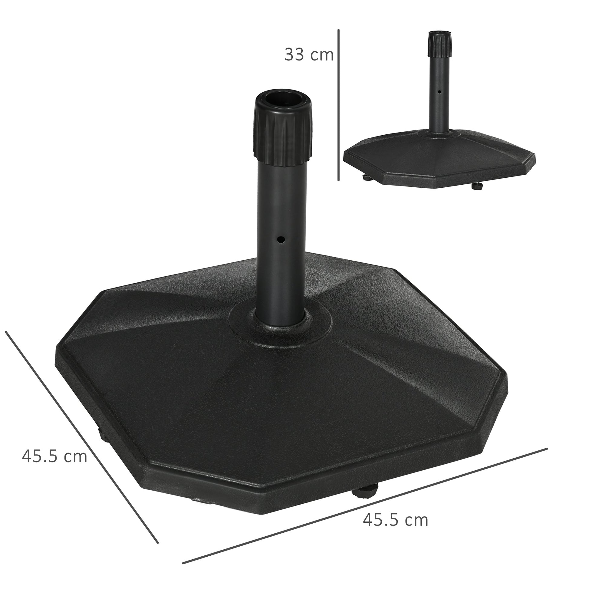 Outsunny 18kg Patio Parasol Base, Garden Concrete Umbrella Base, Outdoor Umbrella Stand Holder for Parasol Poles 34mm, 38mm and 48mm, Black