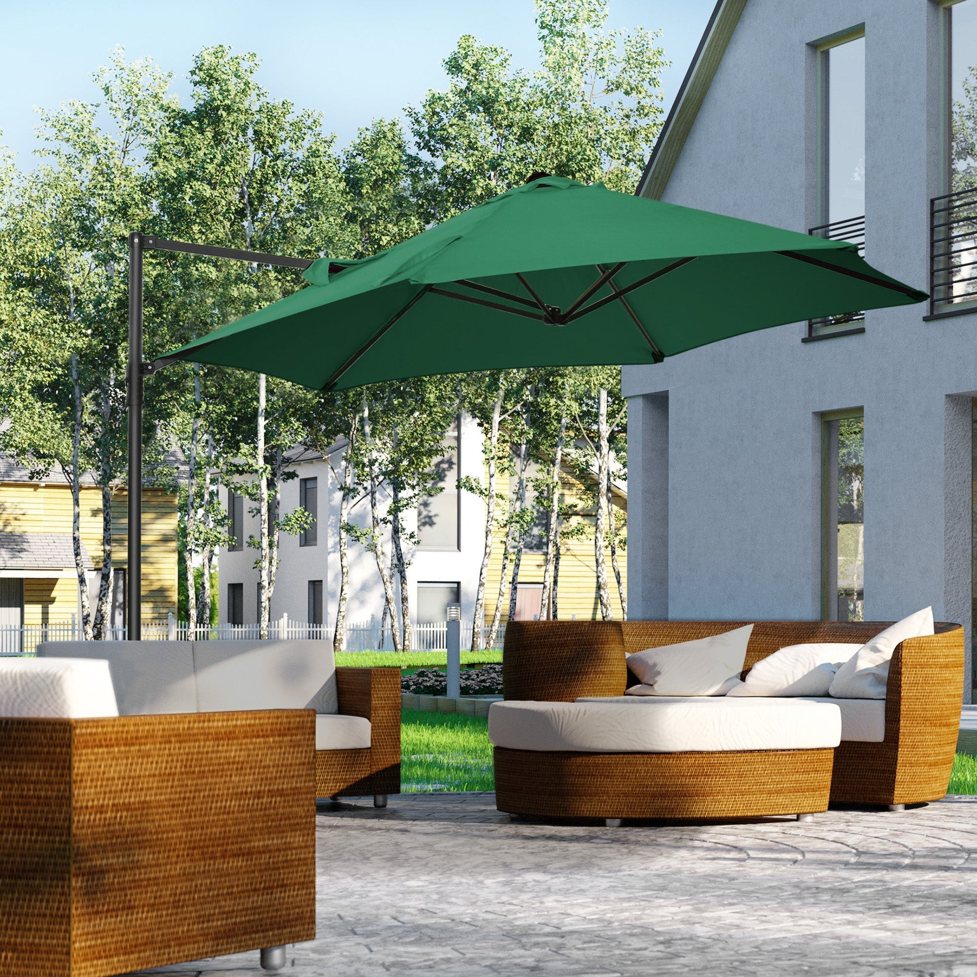 Outsunny 2.5M Garden Cantilever Parasol, Offset Roma Patio Umbrella Hanging Sun Shade Canopy Shelter with 360 Rotation and Cross Base, Green