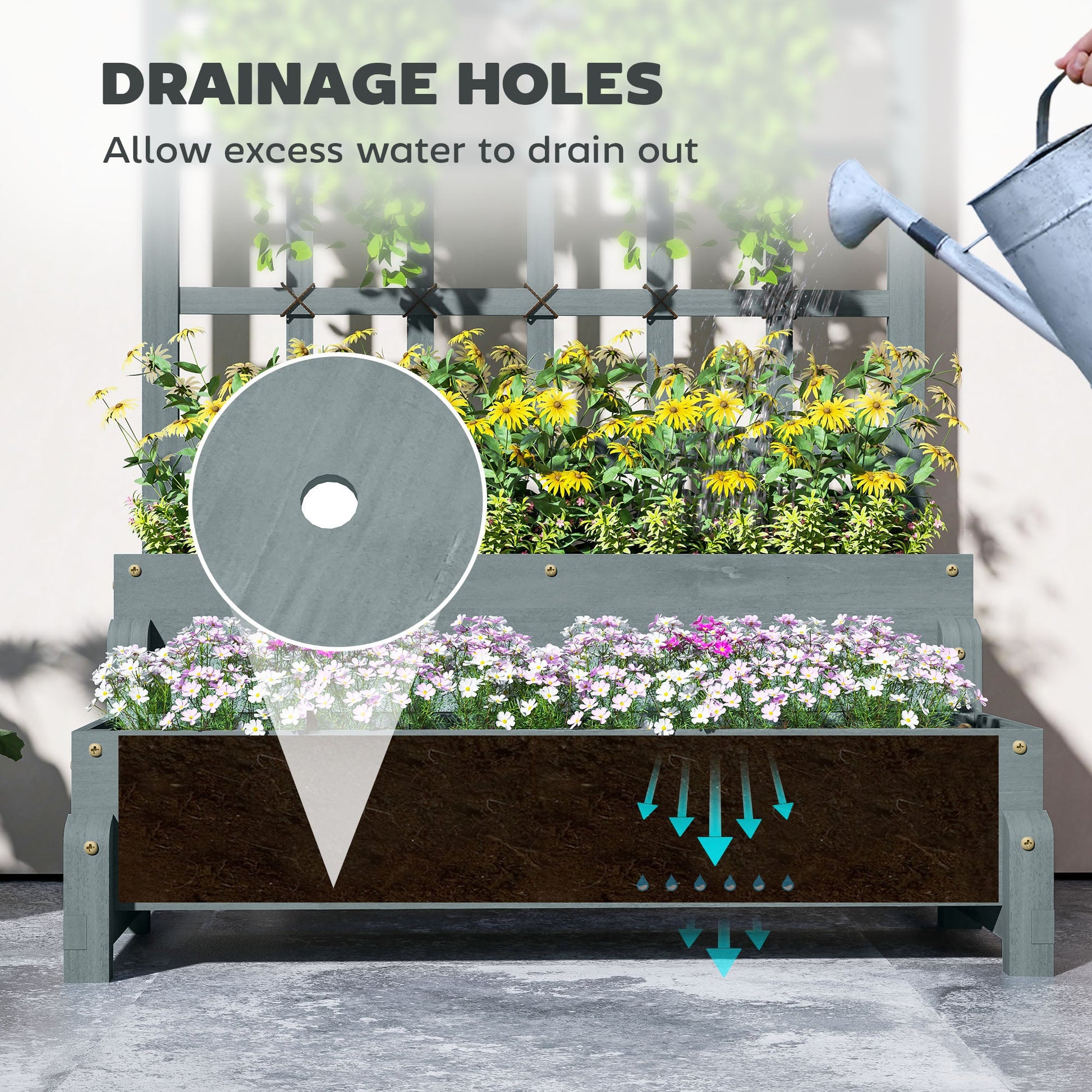 Outsunny 2-Tier Raised Garden Bed with Trellis, Wooden Elevated Planter Box with Drainage Holes, Outdoor Raised Planter for Climbing Plants, Fruits, Vegetables, Flowers, Grey