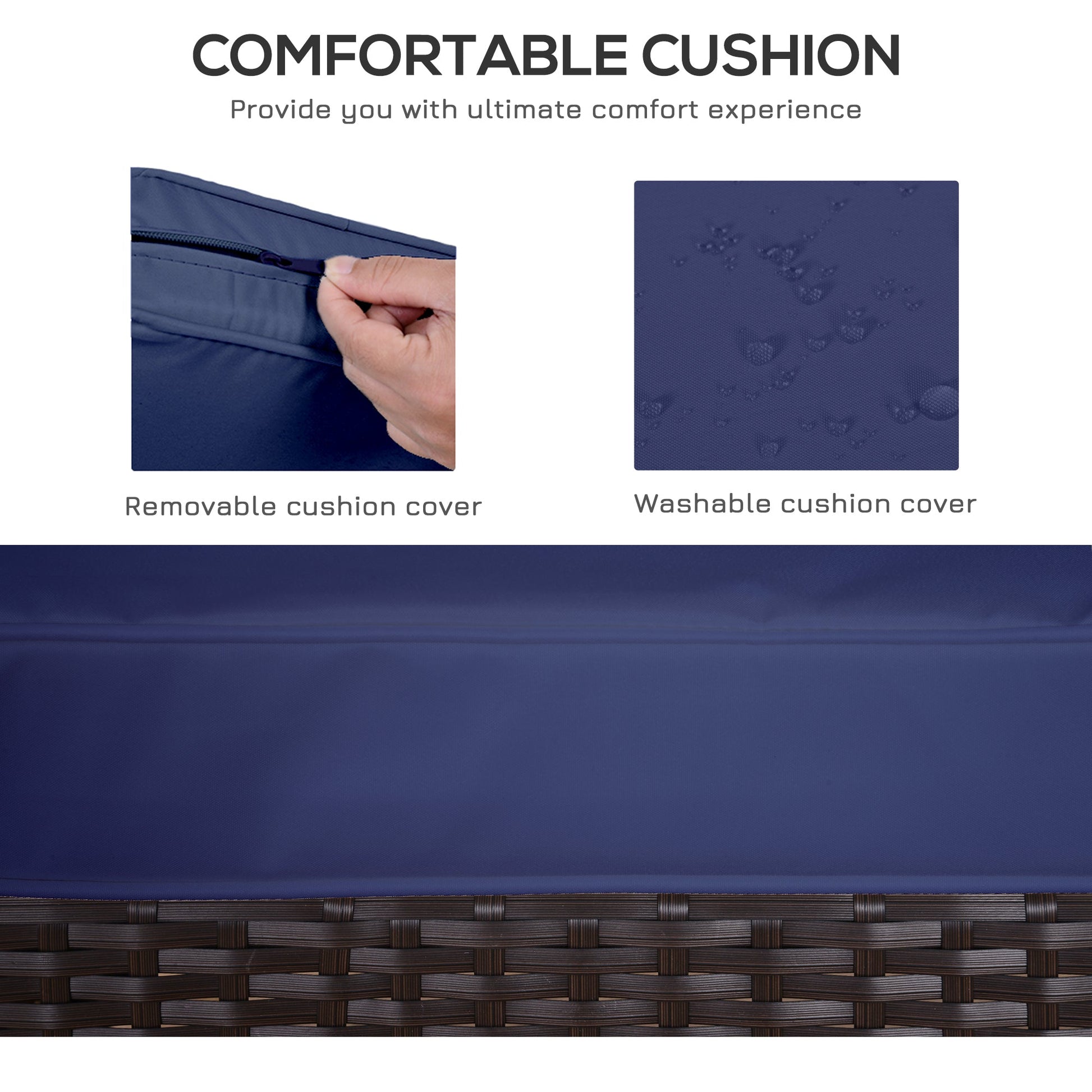 طقم بيسترو من 3 قطع من الروطان من Outsunny مع غطاء أثاث، طقم أثاث حديقة من الخيزران، طاولة قهوة وكراسي ذات سطح زجاجي مع وسائد للاستخدام في الهواء الطلق والفناء والشرفة، أزرق داكن