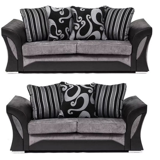 طقم أرائك سبارو تشينيل 3 مقاعد و2 مقاعد - أسود ورمادي / بني وبيج