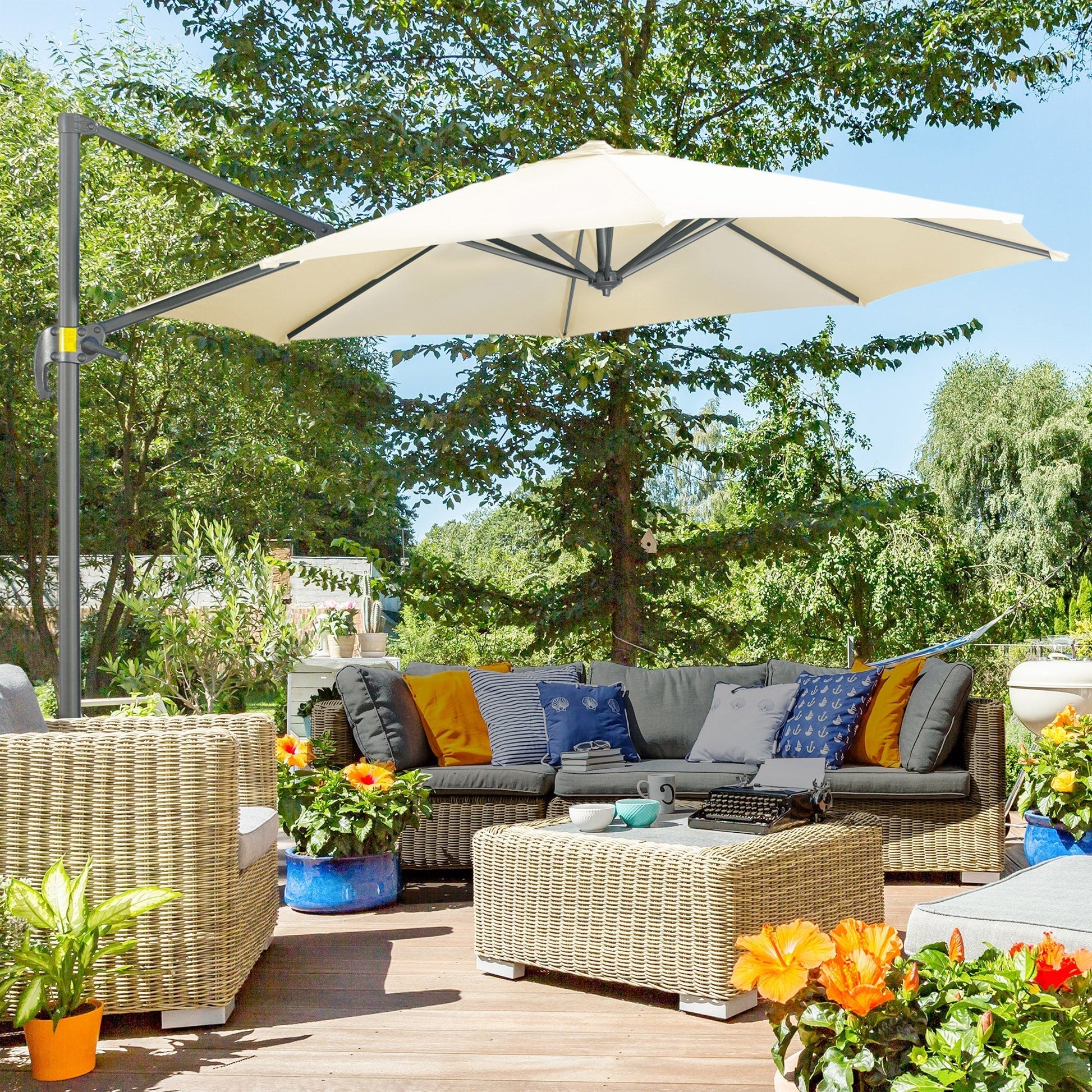 - Cantilever parasol with base included: just add Outsunny weights