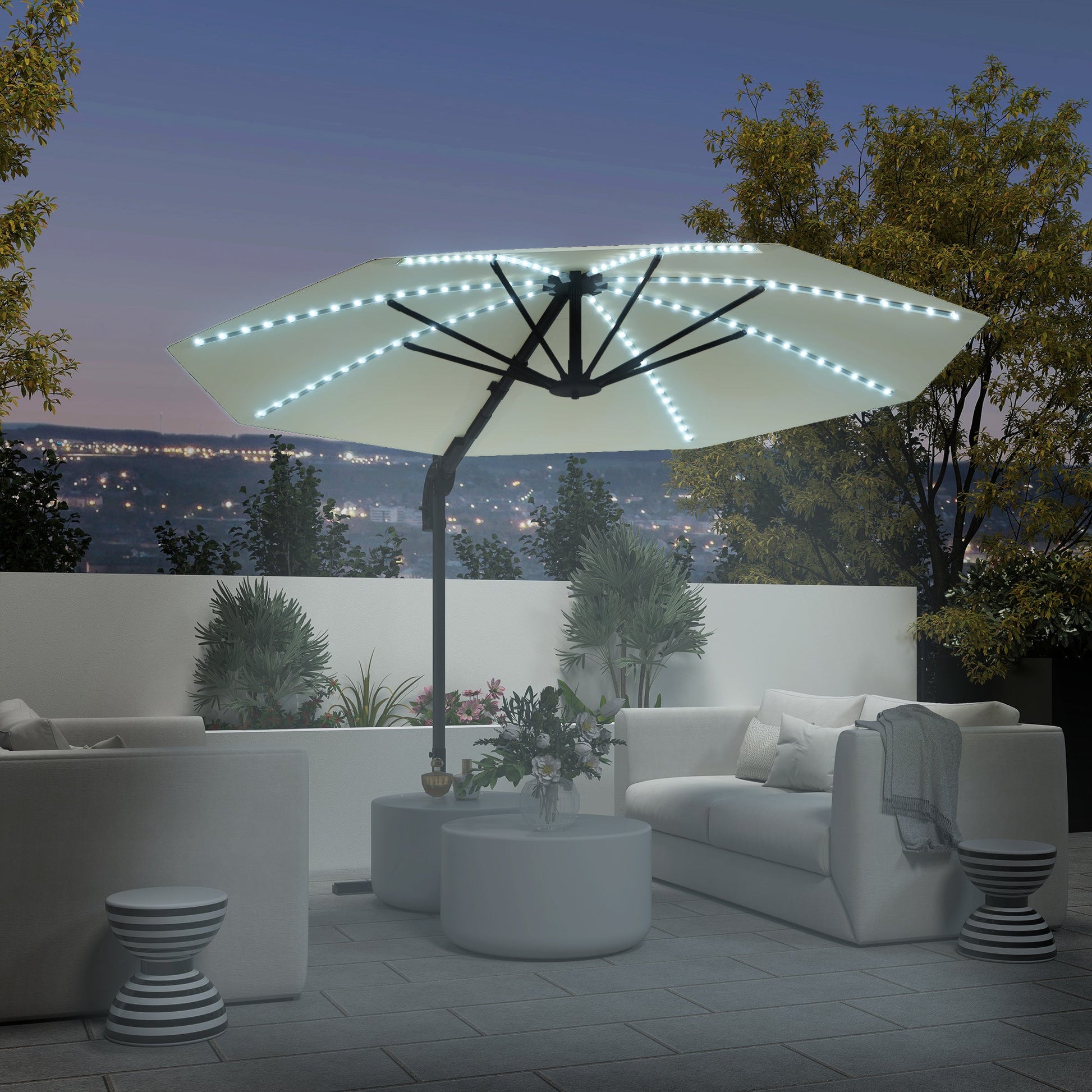 Outsunny 3(m) Cantilever Garden Parasol with Solar Powered Lights, Crank Handle & Cross Base, UPF 50+, 360 Rotation, Cream