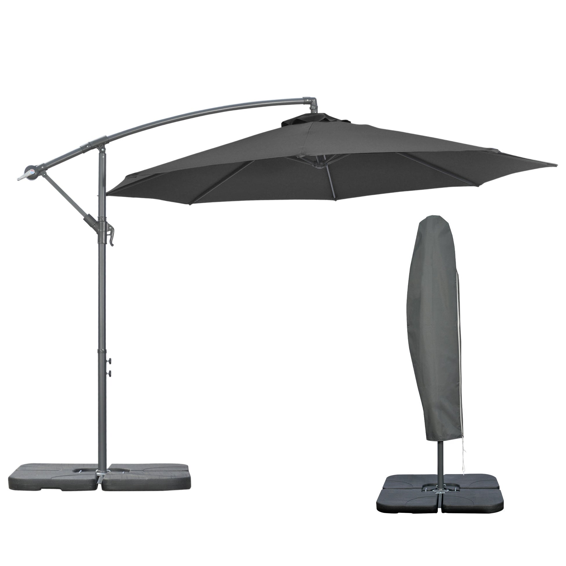 This stylish banana parasol from Outsunny is a superior piece you'll love having outside. The modern overhanging design means you can keep shaded anywhere, bringing shade to large tables, sofas, bistro sets, and more. The core structure is made from metal, so it's tough and sturdy, connecting to the canopy with six ribs for extra support. The canopy is thick to protect you from any sun and light rain, and it features a top vent - letting air pass through with the risk of it overturning.