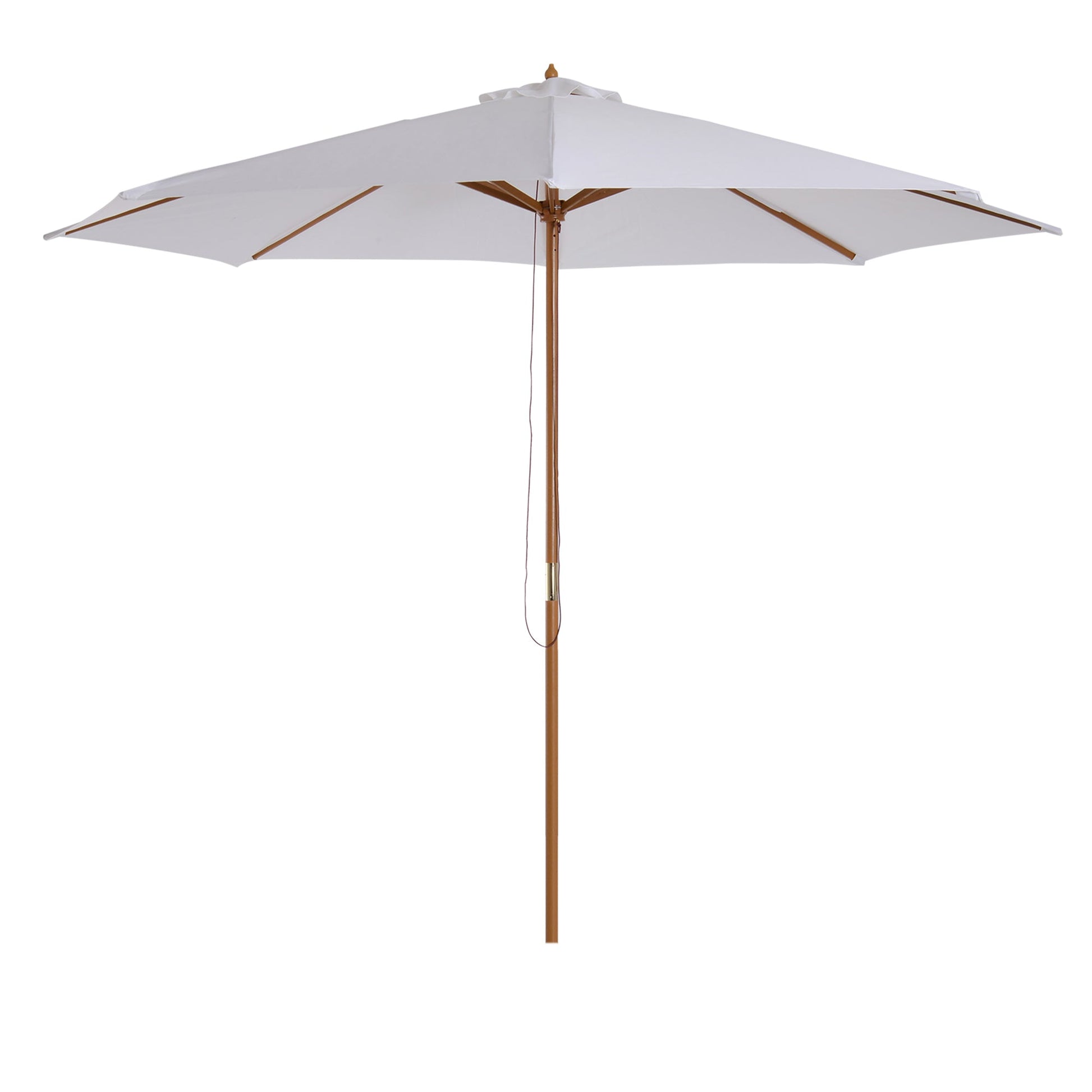 Outsunny 3(m) Garden Parasol, Pulley Operated Patio Umbrella, Wooden Table Market Umbrella with Rope Pulley Mechanism and 8 Ribs, Cream White