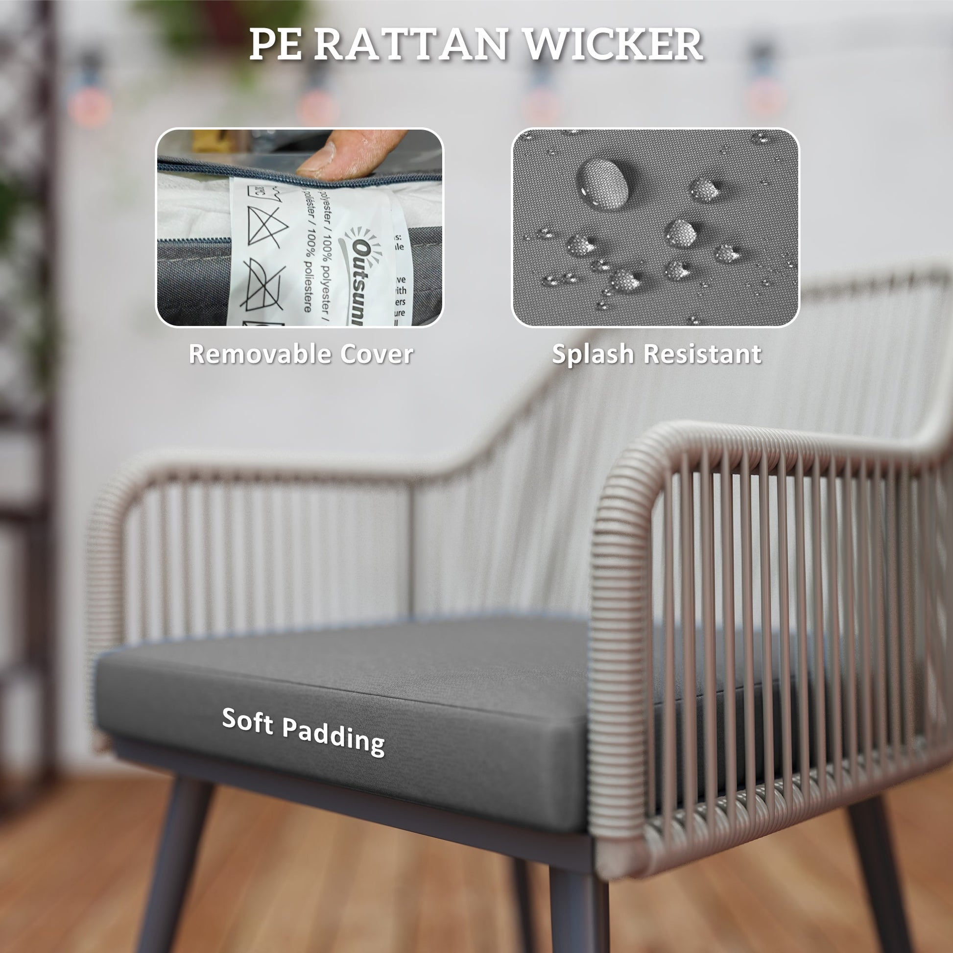 - Material: Steel, PE Rattan, Polyester, Tempered Glass, Sponge