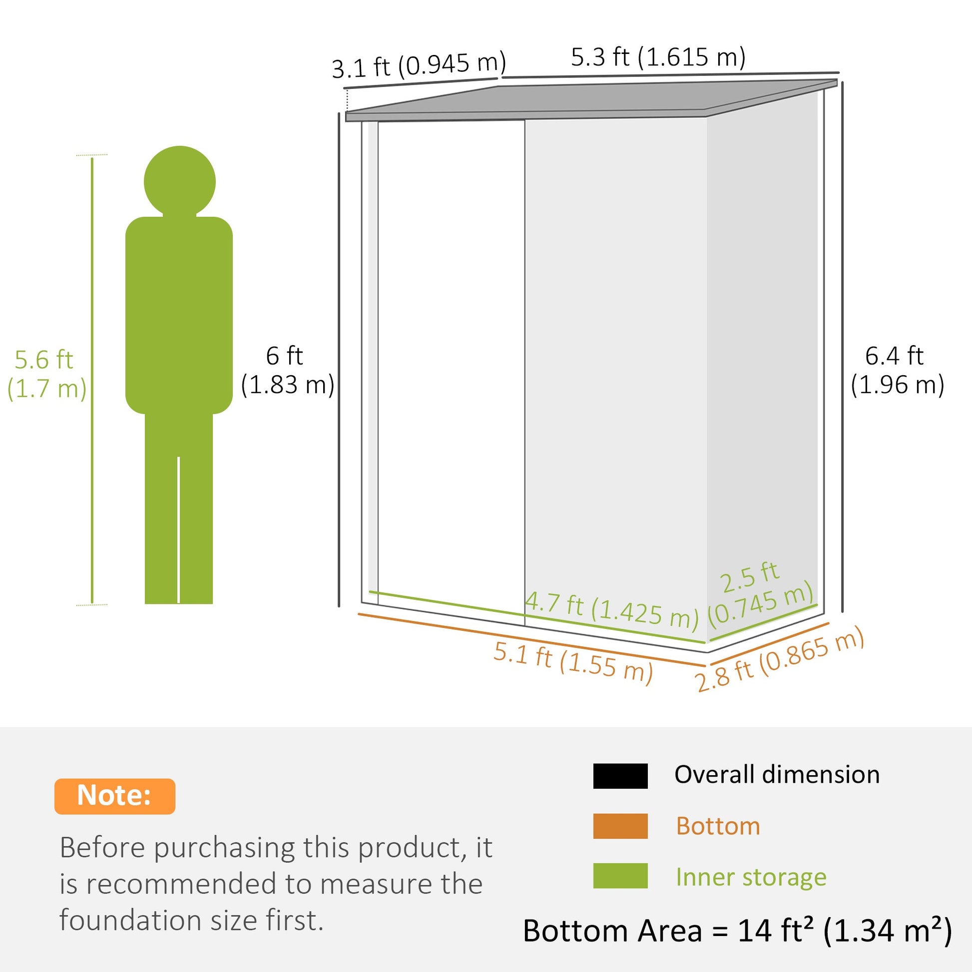 حظيرة حديقة من الفولاذ المموج من Outsunny مقاس 5.3 × 3.1 قدم - رمادي فاتح