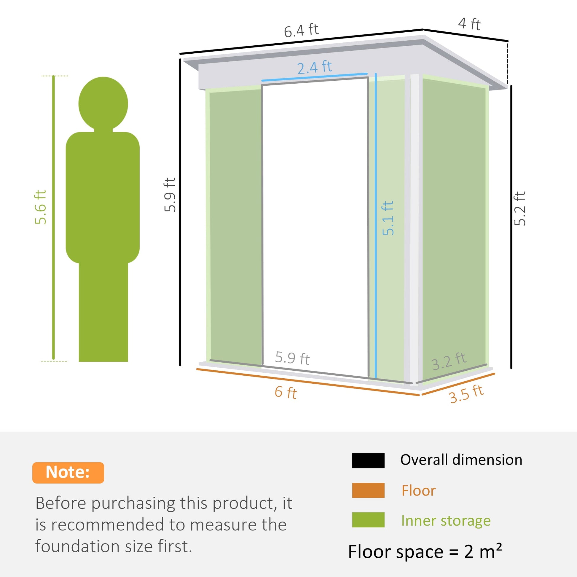 حظيرة معدنية مجلفنة من Outsunny مقاس 6.5 × 4 أقدام مع مجموعة الأساس، حظيرة حديقة قابلة للقفل مع أبواب منزلقة مزدوجة، فتحات تهوية، خضراء