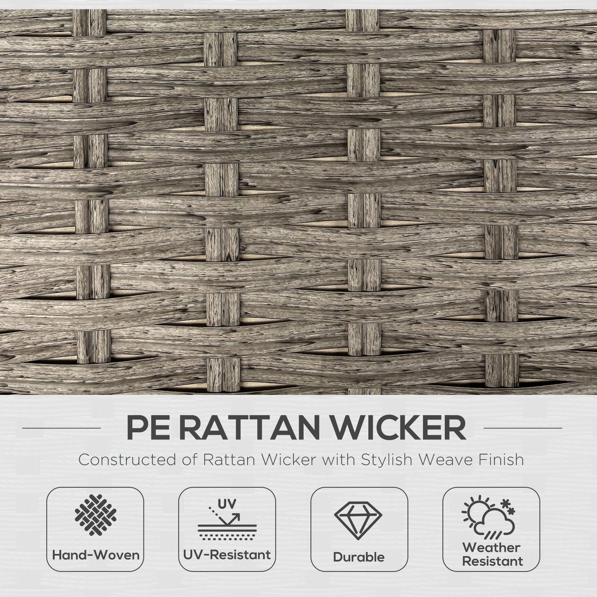 Relax together in comfort and style in this Outsunny rattan corner sofa set., Six pieces: corner chair, right-handed loveseat, left-handed loveseat, long footstool, square footstool and a liftable coffee table - arrange in a way you want. Metal frame for a strong core, wrapped in plastic rattan for support, durability and style. The table can be raised or lowered-dine at a level you want; comes with a wood-effect top for extra beauty.