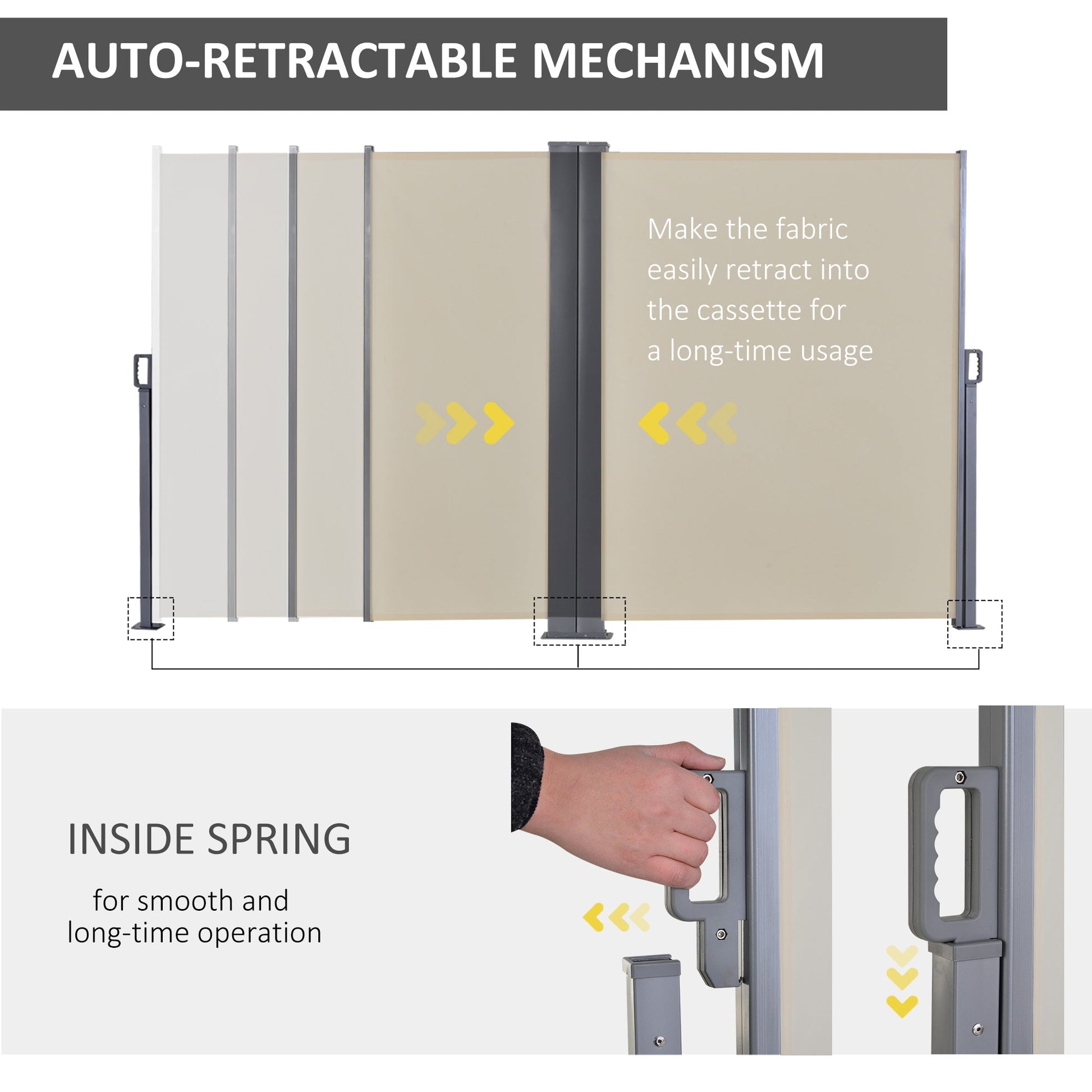 Outsunny 6 x 1.6 M Double Canopy Pull-Out Side Awning Sun Rain Outdoor Protection w/ Steel Frame Retractable Garden Privacy Home Commercial Beige