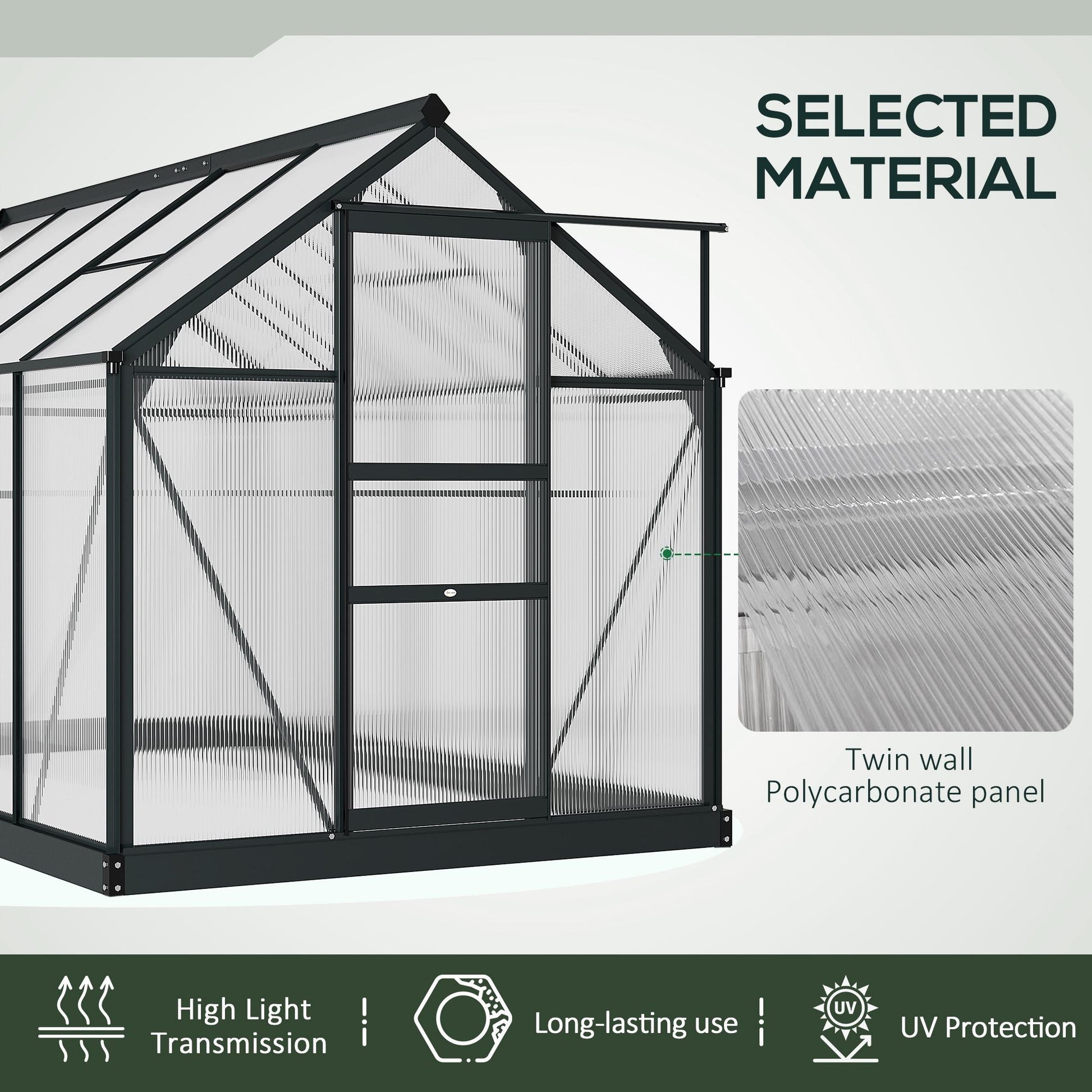- Transparent polycarbonate panels for a safe indoor shelter, which allows sunlight to pass through for growth