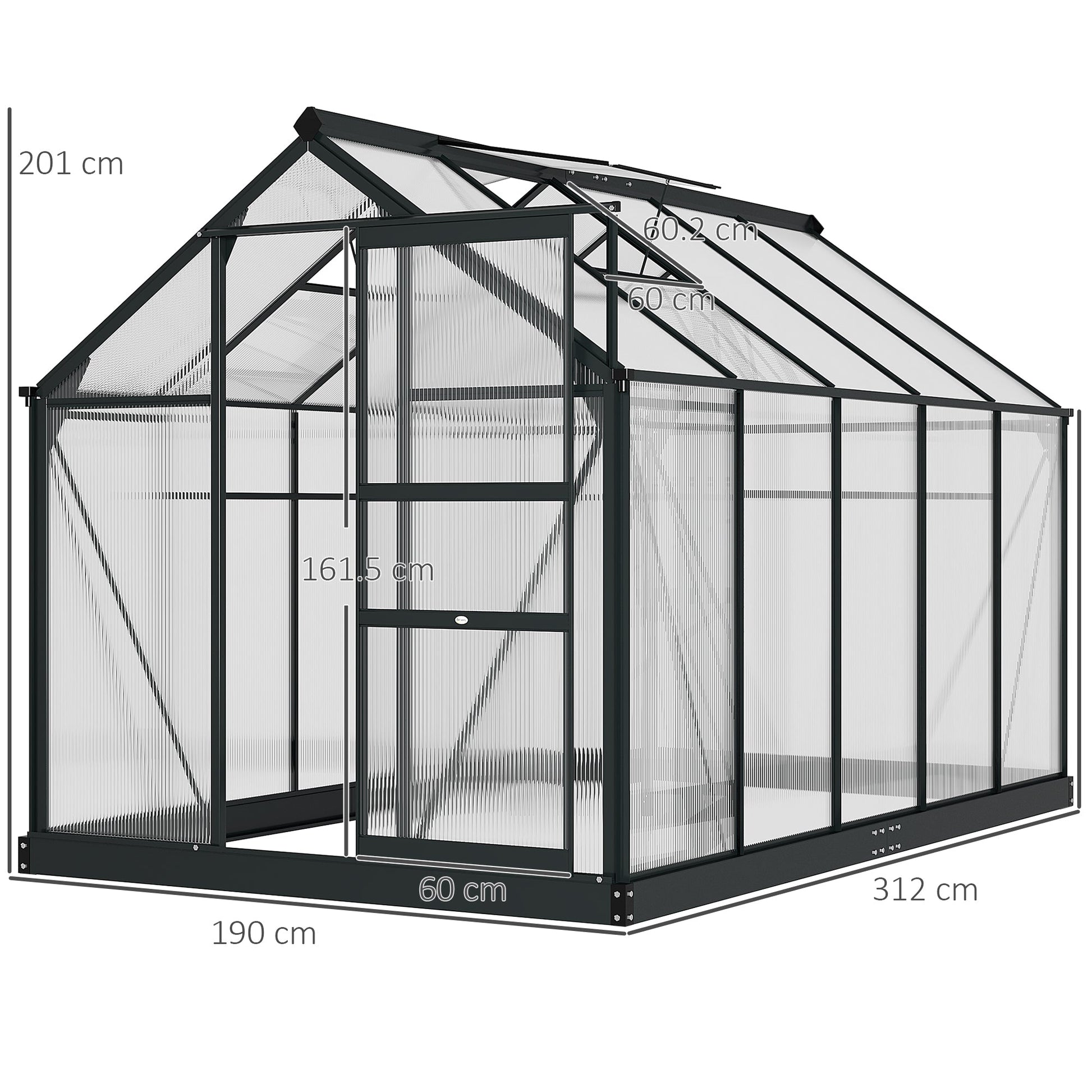 Outsunny 6 x 10ft Polycarbonate Greenhouse, Large Walk-In Green House with Slide Door and Window, Garden Plants Grow House with Aluminium Frame and Foundation, Grey