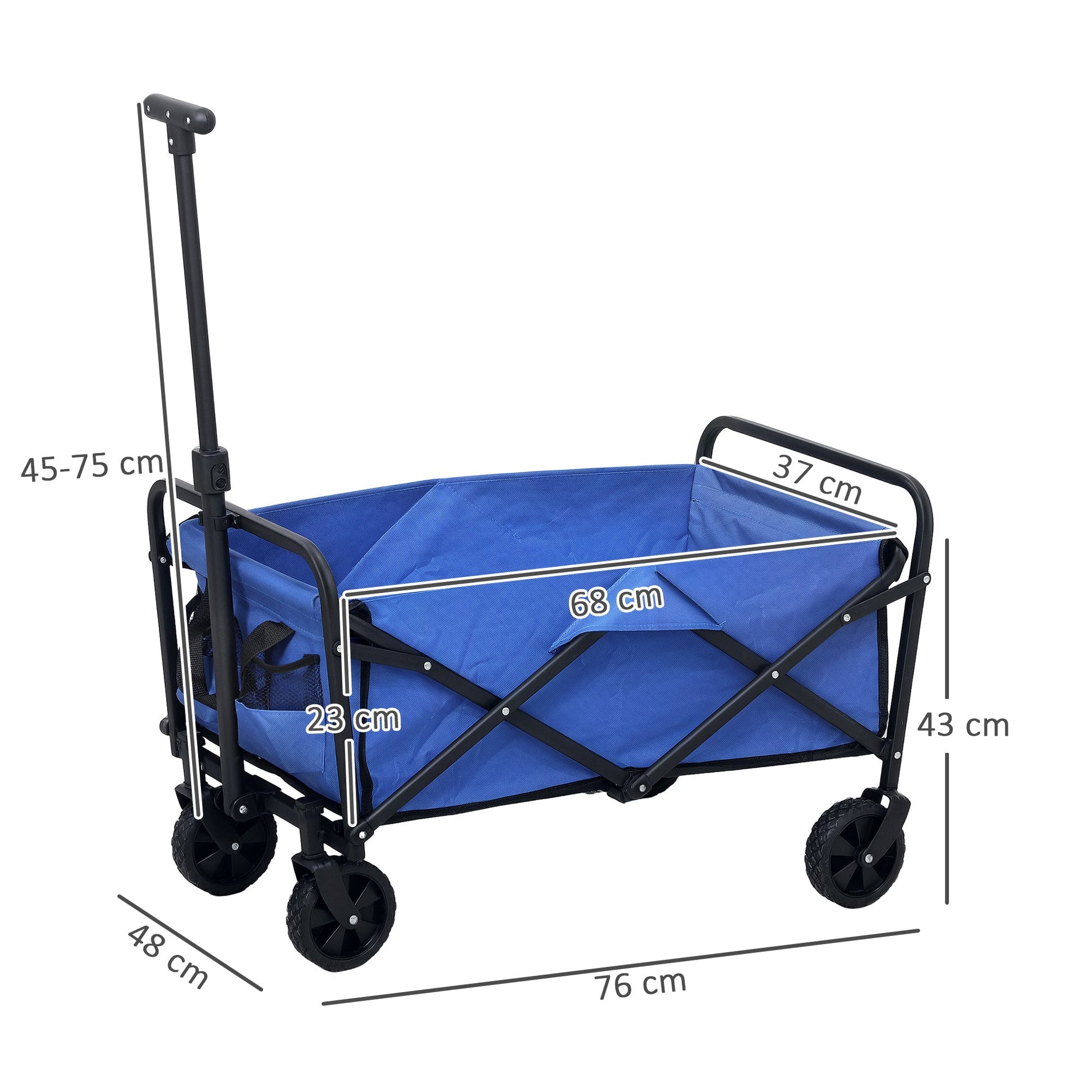 Discover the convenience of the Outsunny Garden Cart, a versatile trolley on wheels designed for every outdoor adventure. With a spacious 62 L cargo bag and robust 120 kg capacity, it's great as a festival trolley or camping trolley. Crafted from splash-resistant Oxford fabric and a powder-coated frame, this foldable cart is built for durability and ease.