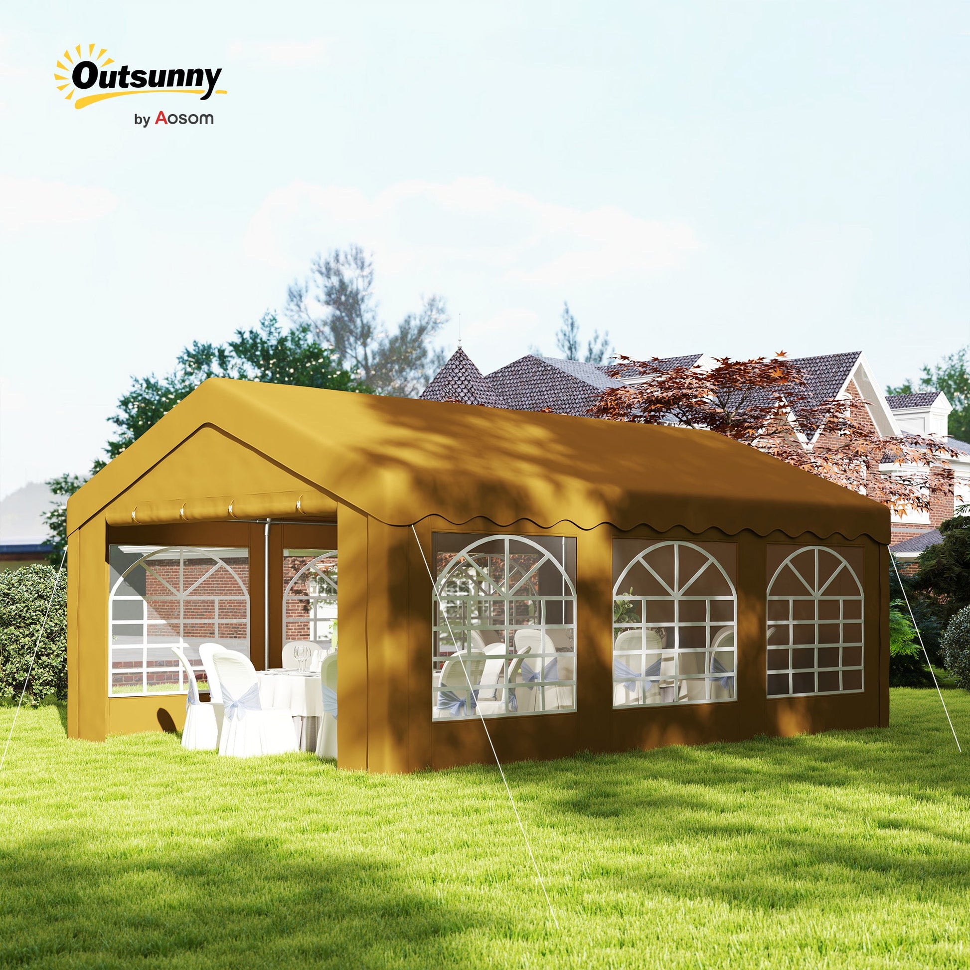 Outsunny 6m x 4m Marquee Party Tent Wedding Canopy, Pop Up Gazebo with Sidewalls, Doors, Windows, Galvanised Garden Gazebo for Parties Events, Yellow