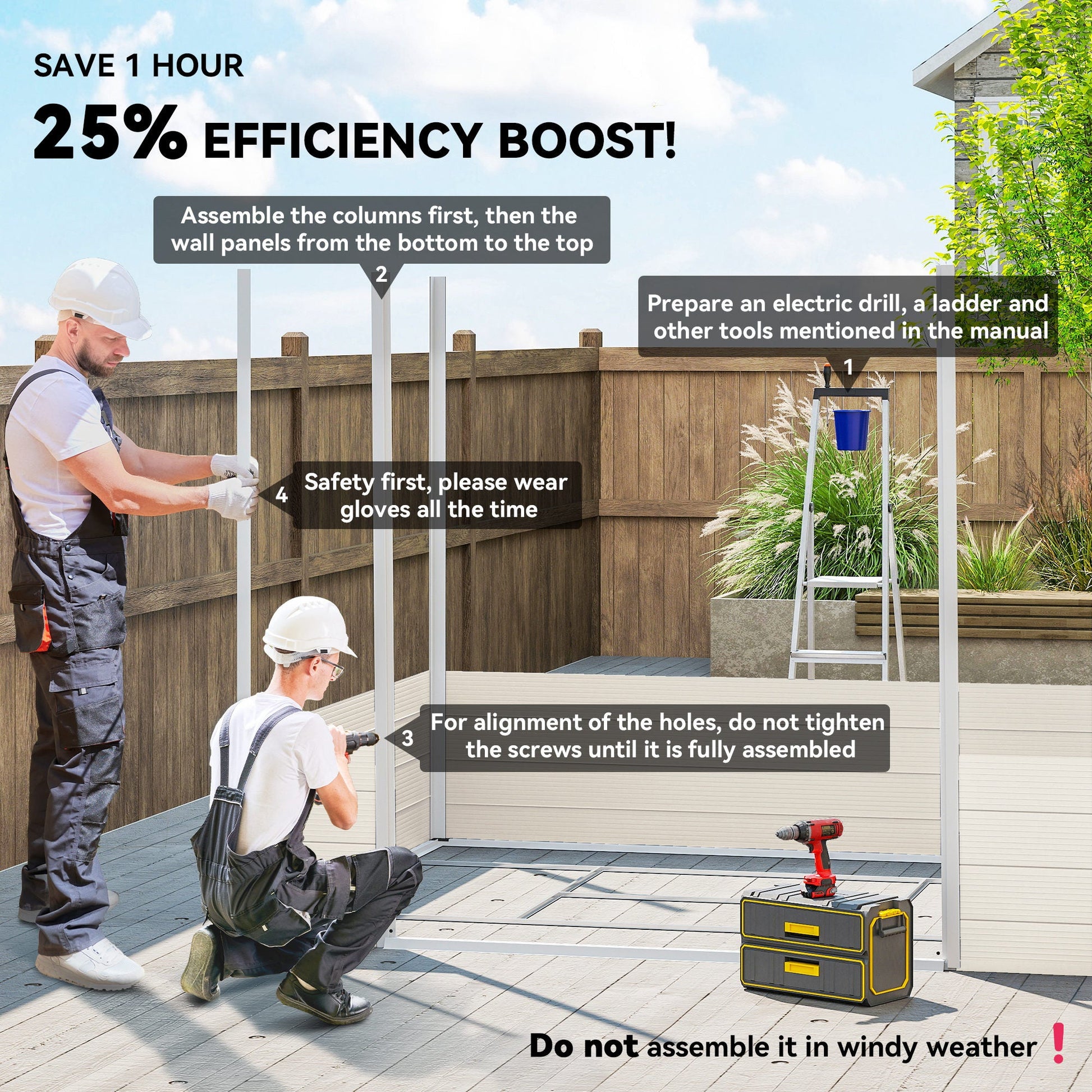 Outsunny 7.9ft x 6.2ft Aluminium Frame and Plastic Wall Shed, with Foundation - Cream White