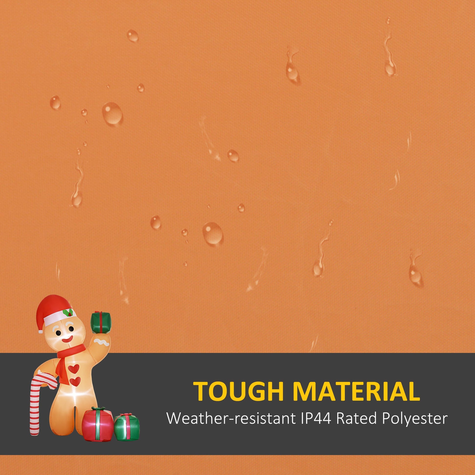 Christmas made extra fun? Yes please. Do it, this season and beyond, with this Outsunny inflatable gingerbread man with a candy cane and three gift bags. The polyester shell makes this a tough piece, which is also IP44 rated for mild water resistance - it's suitable for use in mild rain outdoors. Inside there are six white LED lights - this inflatable gingerbread man glows and sparkles to bring the night alive, this season and beyond.