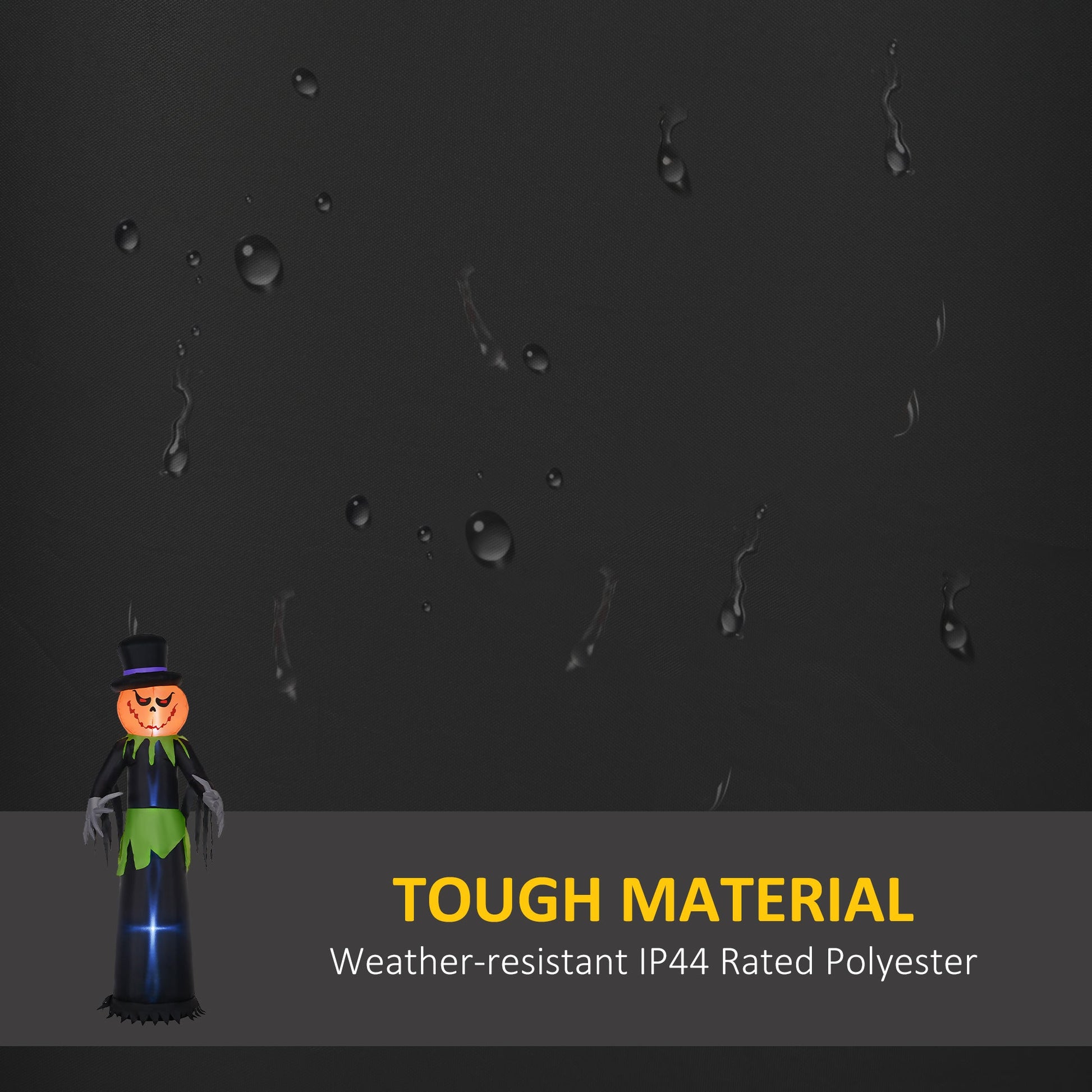 Halloween made extra fun? Yes please. Do it with this Outsunny inflatable pumpkin ghost in a hat. Our Halloween house decoration is suitable for indoor and outdoor use, thanks to the weather-resistant polyester shell - keep it inside or extend the fun to your neighbours. Inside, there are three LED lights which emit a bright and soft glow - great for creating a fun atmosphere in the dark. Kids and adults are all going to love this outside Halloween decoration.