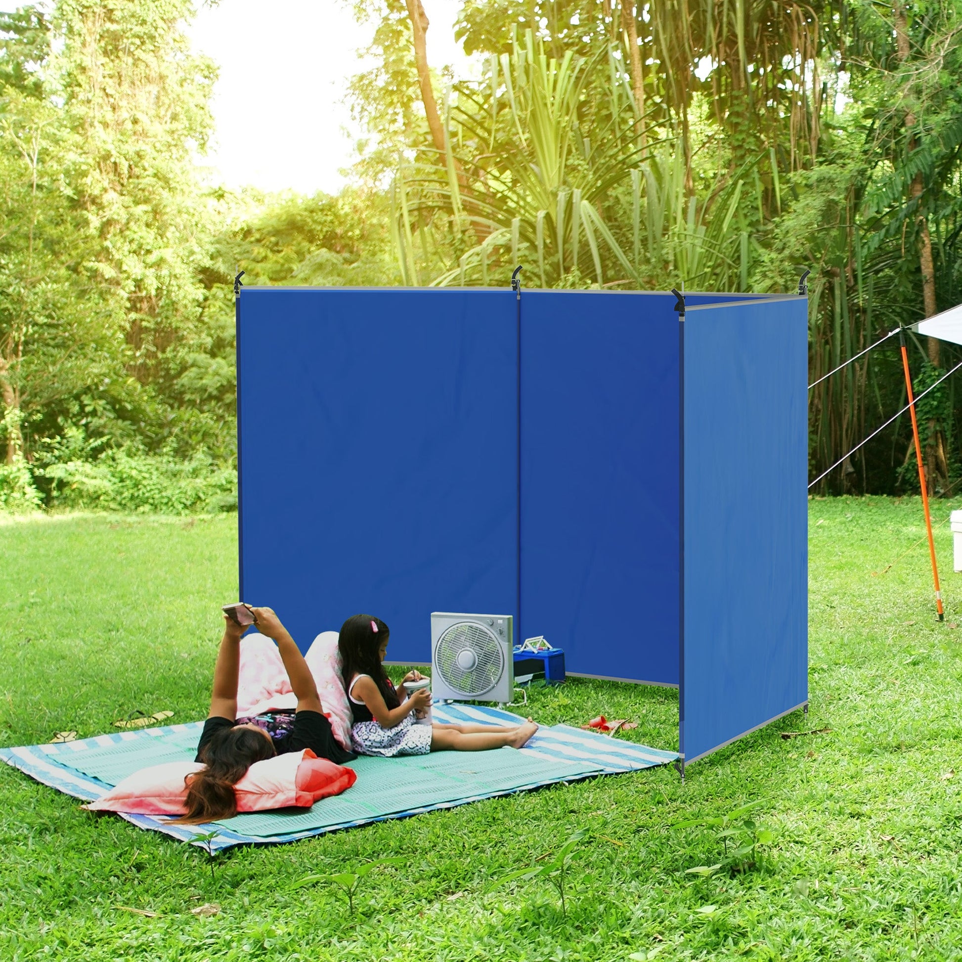 An essential accessory for practically any outdoor break this Outsunny privacy screen protects you from wind, sun, light rain and flying sand - as well as creating a private are when needed. The 4.5m x 1.5m size is large and covers an expanse area - great for when you're at the beach or camping - or even in your garden. The fabric protects against light weather annoying you, the steel poles hold the structure up - dig into the ground to keep canopy standing in place.