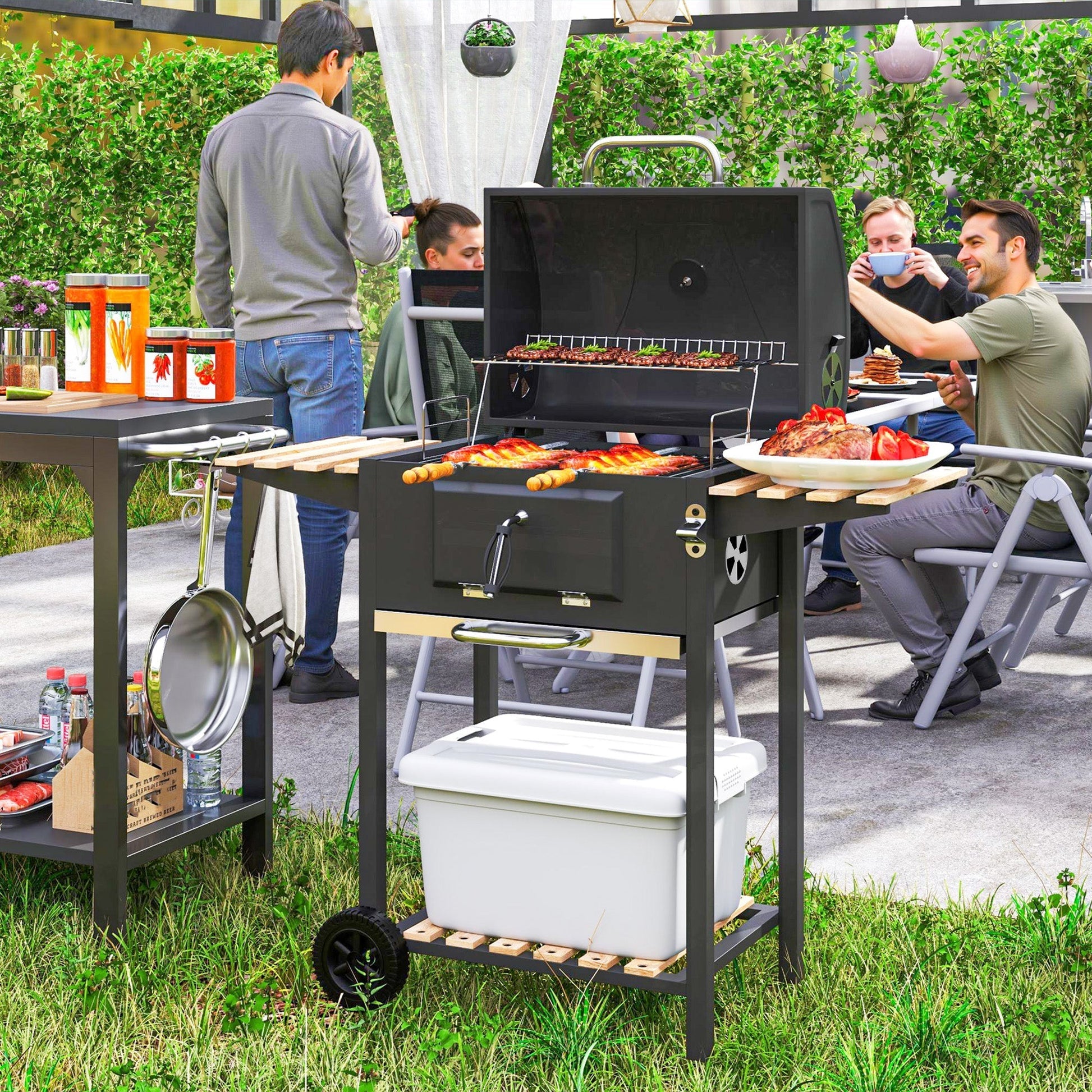 Fire up the fun with the Outsunny Charcoal Grill – your essential companion for sizzling, flavour-packed cookouts! Featuring a spacious grilling area, it effortlessly cooks up to six burger patties and sausages at once. Take control of your BBQ experience with a 3-level adjustable charcoal pan and a built-in thermometer, ensuring precision heat management for perfectly grilled delights every time. Get ready to grill like a pro!