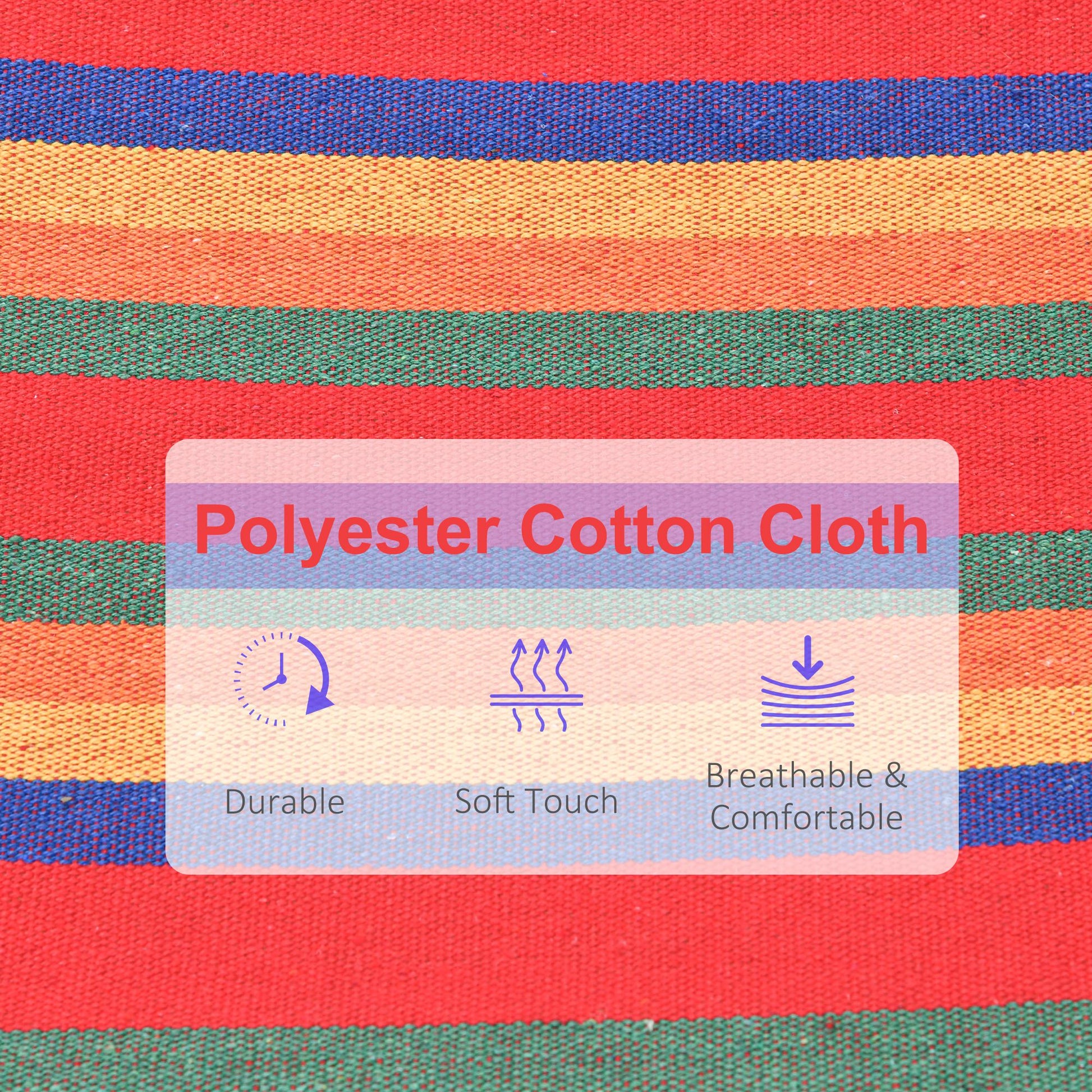 Make the most of the outside and relax comfortably for hours on end with this string hammock from Outsunny. Made from a cotton and polyester blend to ensure strength and sturdiness, the bedroom hammock is finished in a vibrant multicolored design that will look beautiful placed anywhere. Our swing hammock is ideal gift for friends, kids, lovers, father, mother, traveler, beach visitors, tent campers who loves hiking, camping, climbing, boating, traveling, picnic, or garden and yard use.