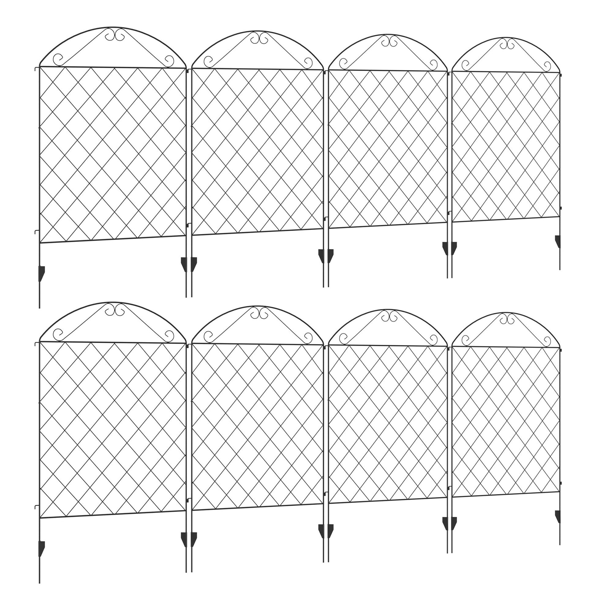 Outsunny Decorative Garden Fencing, 43in x 23ft Outdoor Picket Fence Panels, 8PCs Rustproof Metal Wire Landscape Flower Bed Border Edging Animal Barrier, Black