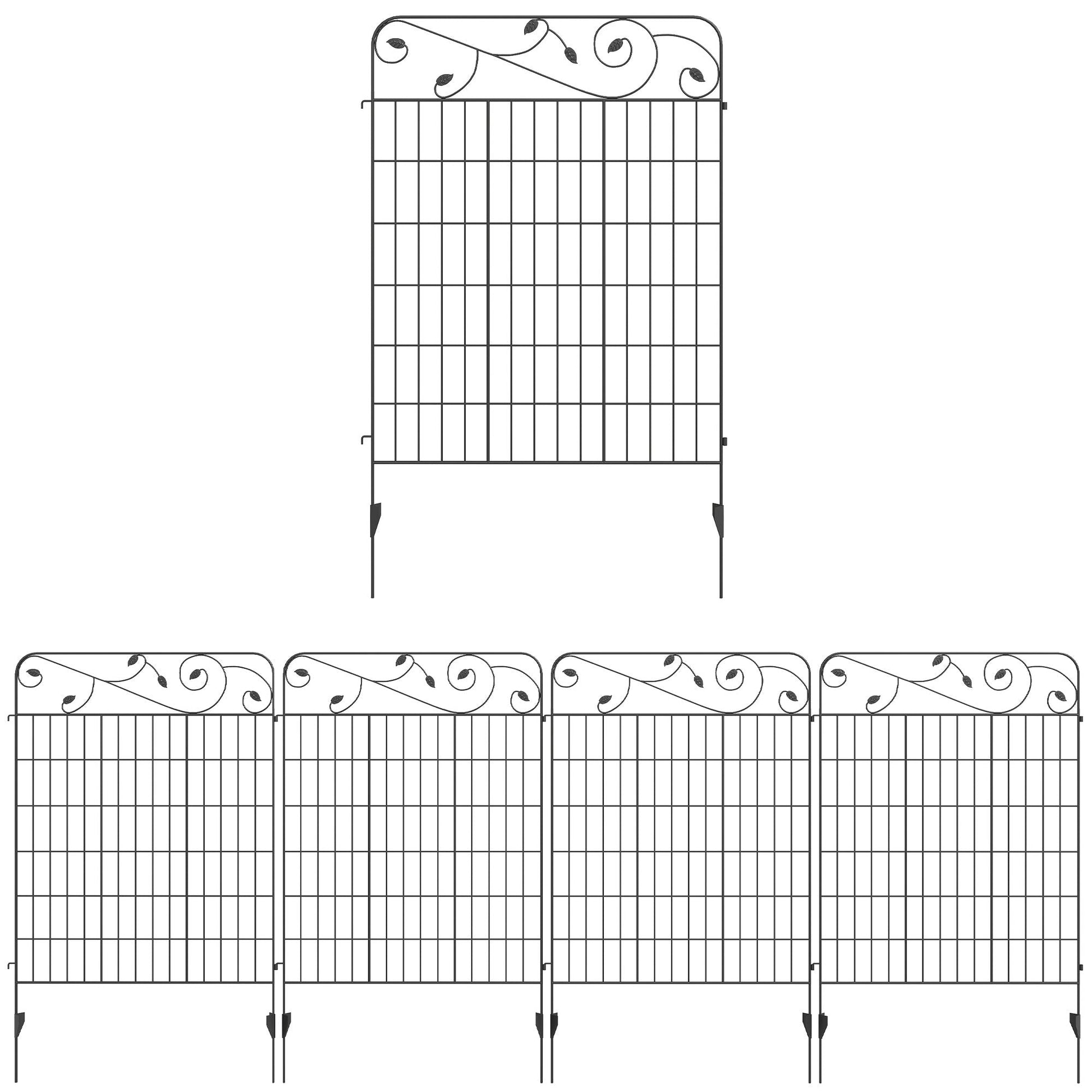Outsunny Decorative Garden Fencing, 4PCs Outdoor Picket Fence Panels, 43in x 11.5ft Rustproof Metal Wire Landscape Flower Bed Border Edging Animal Barrier, Black